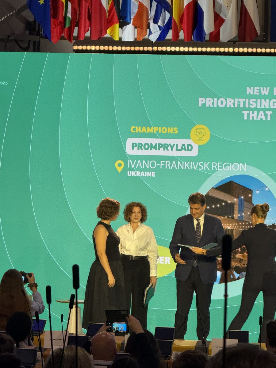 Особливою подією другої частини конференції стало нагородження переможців конкурсу New European Bauhaus Prizes, яке відбулося в стінах Європейського Парламенту. Приємно відзначити, що Україна була серед лауреатів. Переможцями стали інноваційний центр Promprylad та харківський проєкт «3,14BAN: Переробка рекламних банерів». Це яскравий приклад того, як креативні та екологічні рішення можуть ставати частиною нового європейського бачення сталого майбутнього. Це свідчить про високий рівень українських ідей, що відповідають цінностям NEB і мають потенціал для масштабування на міжнародному рівні.