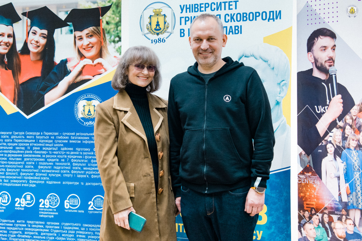 «Якщо у вас правильне мислення, ви бачите взаємозв’язки і розумієте, як із видимого пізнавати невидиме, як казав Григорій Сковорода», – зазначив він, згадуючи свого земляка з Полтавщини, чиє ім’я носить наш заклад.