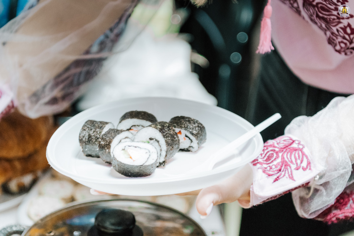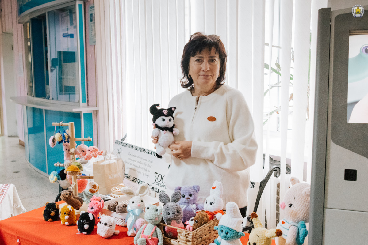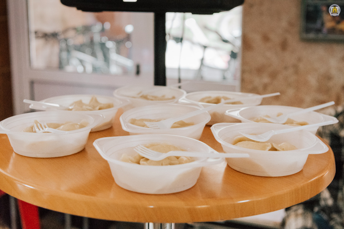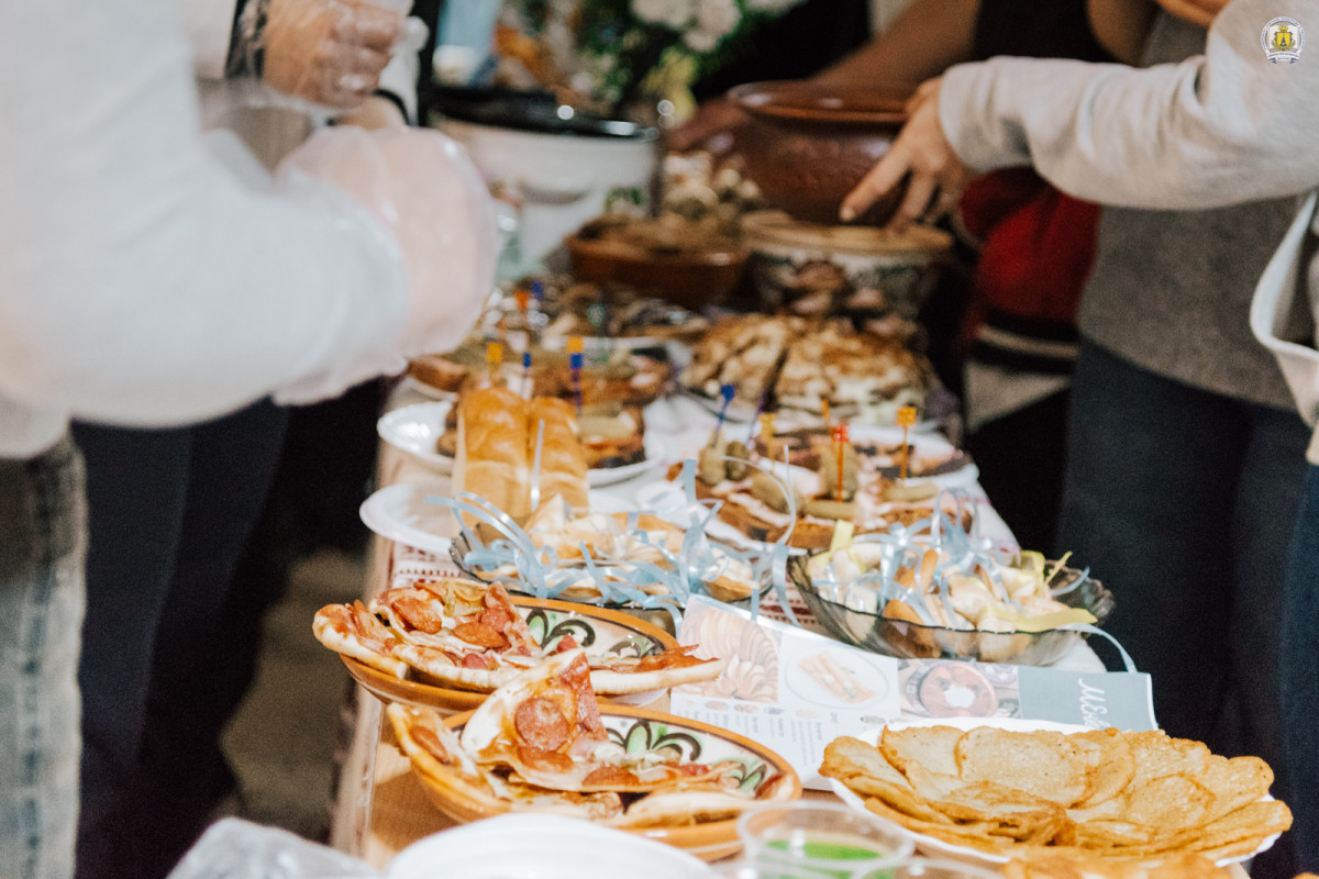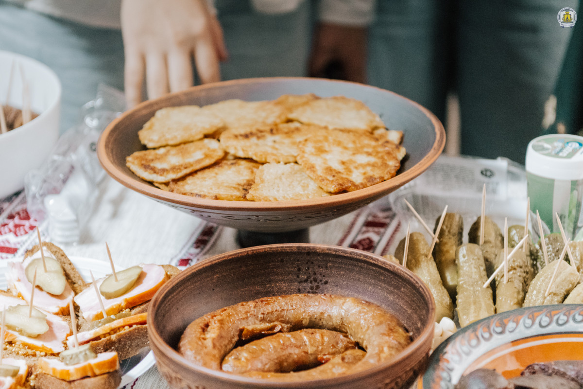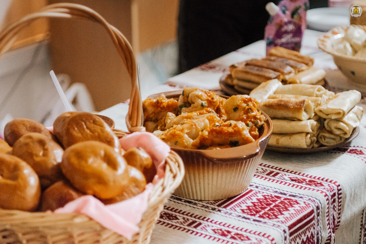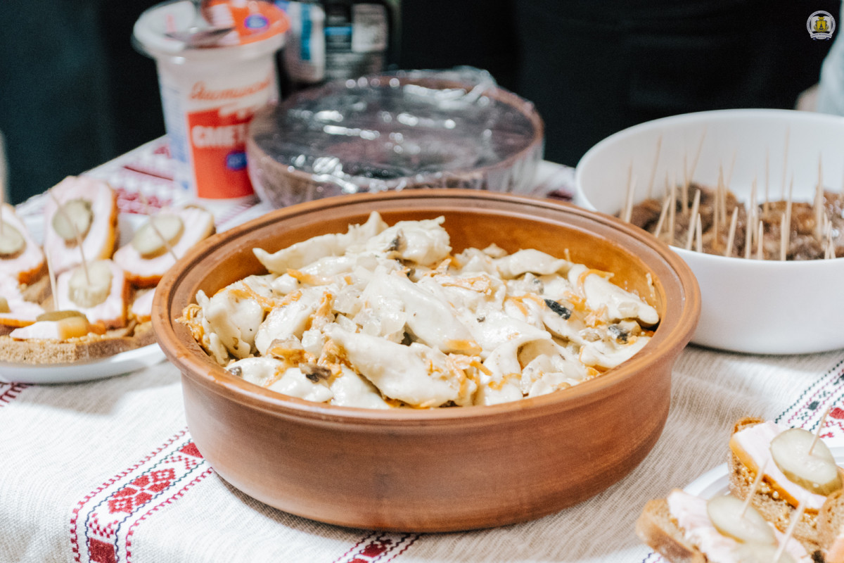 Близько опівдня, на великій перерві, на першому поверсі головного корпусу університету було направду велелюдно – тут набирала обертів виставка-ярмарок страв національної кухні. З-поміж страв якими могли почастуватися сковородинівці та гості були й смачні солоні та солодкі вареники й млинці, запашні канапки й пироги з різною начинкою, домашні ковбаски, наваристий борщ, соковиті голубці та ще багато різноманітних наїдків. Безумовно, кожен з факультетів та його представників заздалегідь продумував, який асортимент товару запропонує до продажу, як оформить своє торгове місце, як буде закликати потенційних покупців аби акумулювати якнайбільше коштів захисникам.