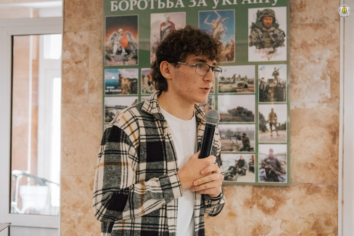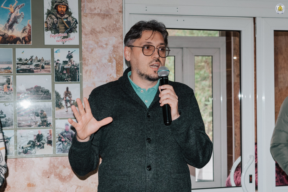 З вітальним словом до сковородинівської родини звернувся проректор з наукової роботи та інноваційної діяльності Університету Григорія Сковороди в Переяславі Василь Дудар, який підкреслив важливість цієї акції у час, коли українські захисники виборюють волю і свободу України