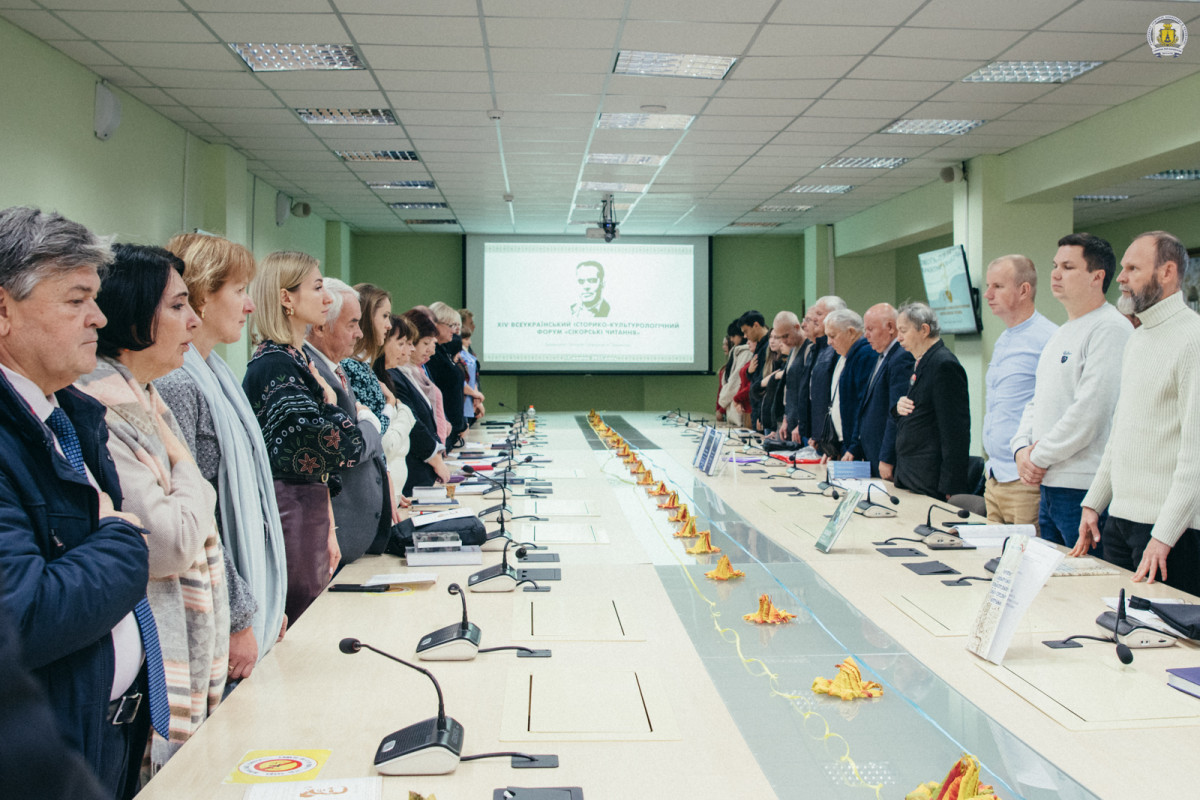 Урочиста частина зібрання відбулася вкотре відбулася у конференц-залі імені Василя Сухомлинського. На початку прозвучав Державний Гімн України, після чого усі присутні вшанували пам’ять полеглих співгромадян у російсько-українській війні. За багаторічною традицією робота форуму розпочалася з прослуховування однієї з улюблених пісень М. І. Сікорського «Сіла птаха» та переглядом документальних світлин.