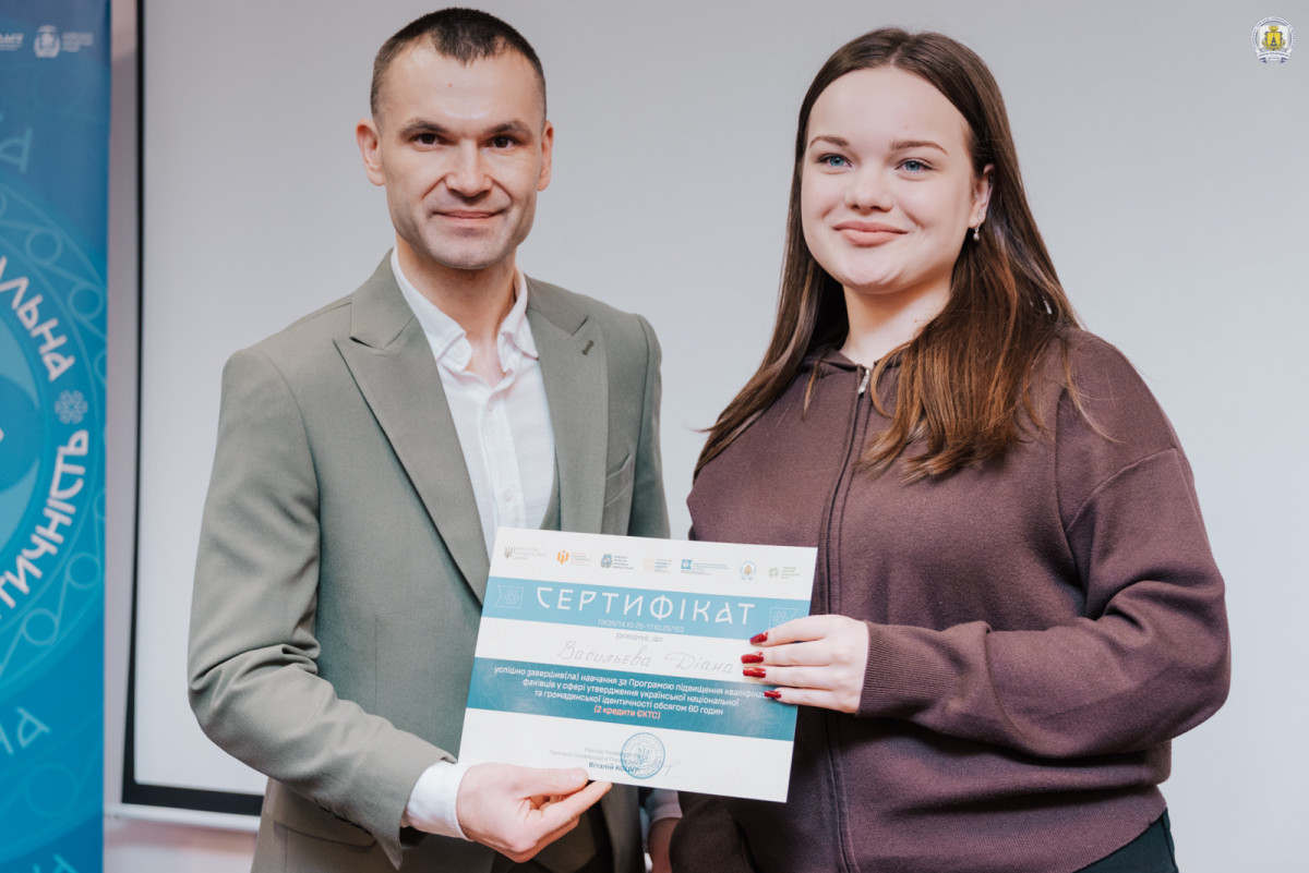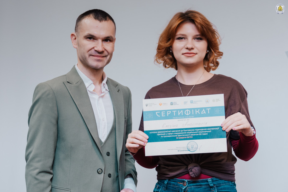 Після кількох днів інтенсивного навчання та плідного спілкування учасники отримали сертифікати, що підтвердили успішне завершення програми. Урочиста церемонія вручення відбулася за участю ректора Університету Григорія Сковороди в Переяславі Віталія Коцура, керівника обласного молодіжного центру Андрія Михайлова та заступниці начальника управління молоді та спорту Київської обласної державної адміністрації Світлани Назарук. Віталій Вікторович подякував присутнім за активність, зацікавленість і небайдужу громадянську позицію, наголосив на важливості таких ініціатив для формування свідомого покоління молоді та побажав учасникам подальших професійних успіхів, натхнення й невпинного прагнення до розвитку.