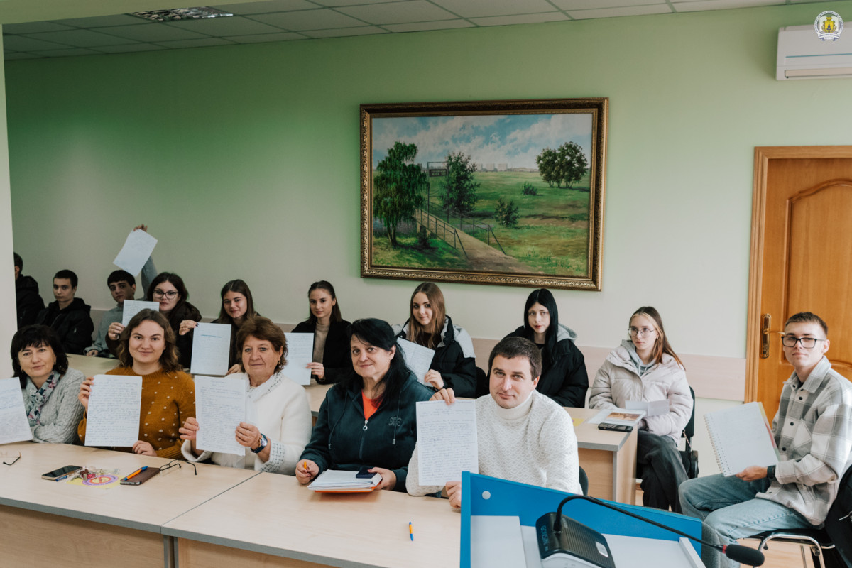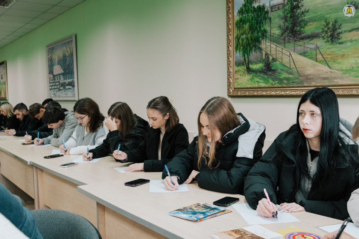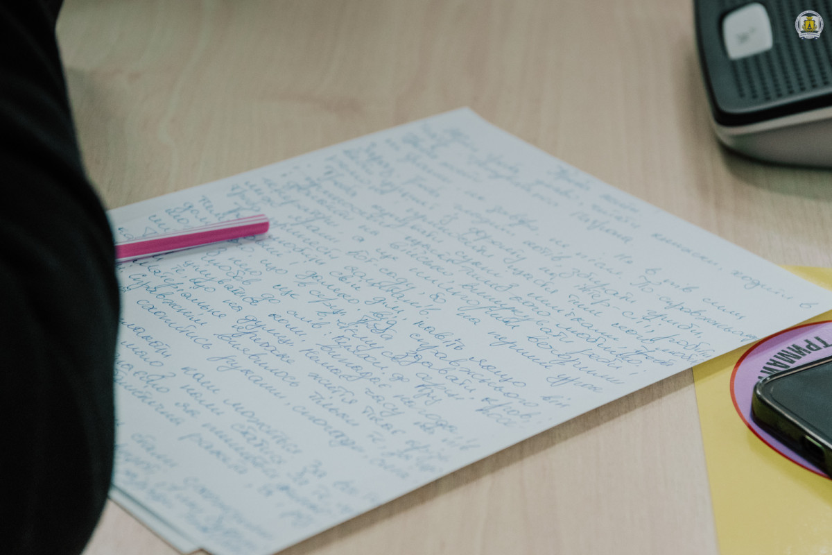 Як і завжди, у залі панувала особлива атмосфера зосередженості: шурхіт паперу, тихі подихи, обережні рухи ручок, подивовані вигуки коли Наталія Сумська пришвидшувала темп і хтось за нею не встигав. Сковородинівські учасники писали уважно та натхненно, адже для них цей диктант – не просто перевірка грамотності, а символ єдності, любові до українського слова та вдячності всім, хто захищає рідну країну.
