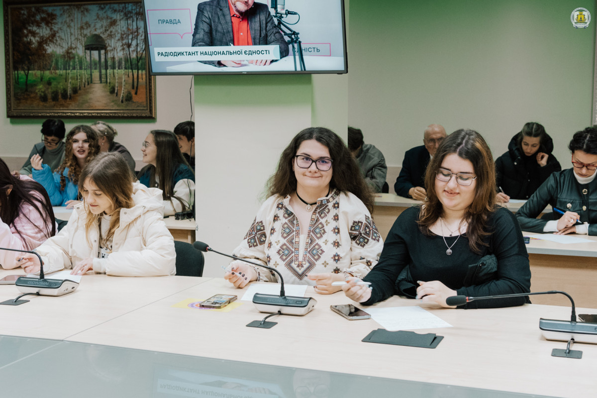«Ми сьогодні зібралися не просто, щоб перевірити грамотність, а щоб відчути єдність через українське слово. Кожен такий диктант – це сторінка нашої історії, доказ того, що українська мова живе, звучить і гуртує навіть у найтяжчі часи. Текст цьогорічного диктанту теплий, щирий, світлий – такий, як сама Україна. І я мрію дожити до того дня, коли в ефірі диктант читатиме вчитель української мови, адже саме вчитель – це справжнє обличчя України», – прокоментувала після завершення диктанту доцентка кафедри української лінгвістики і методики навчання Людмила Довбня, яка цього року завершила свій багаторічний педагогічний шлях і вийшла на заслужений відпочинок.
