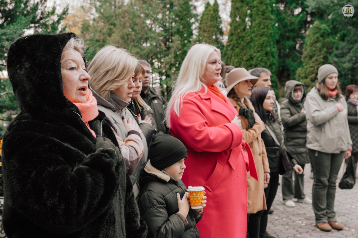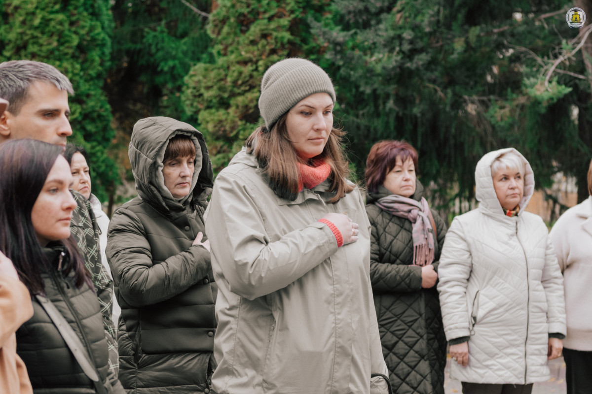 Надалі присутні спільно виконали Державний Гімн України та схилили голови у хвилині мовчання й скорботі за тими, хто своїм життям забезпечує кожну нашу днину, хто заплатив найвищу ціну за майбутнє дітей і онуків, за майбутнє України.