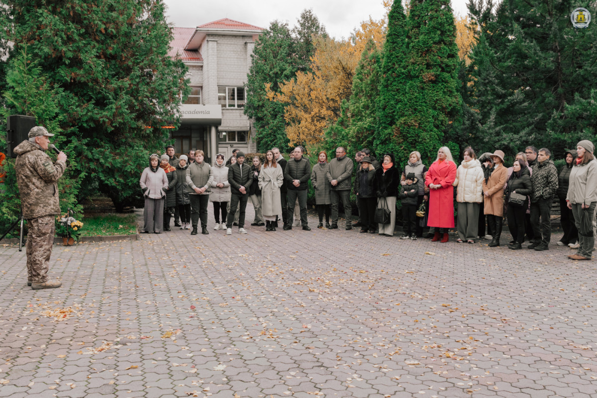 «Насамперед, дозвольте щиро подякувати всім, хто прийшов вшанувати пам’ять мого сина. Дякую за підтримку ректору Віталію Коцуру та Руслані Потапенко. Особлива вдячність їй за мужність – я гордий, що вона виросла й продовжує його справу. Ярослав вразив мене за два місяці до свого відходу: «Я не боюся смерті». Ті слова нині повторюють його побратими, військові та волонтери. Тепер я розумію їхню силу й глибину. Нещодавно моя сестричка зателефонувала: «Ваші пісні з колегою Віктором Олексійовичем Тузиком – світла йому пам’ять – співають на вокзалах, збирають кошти для воїнів ЗСУ. Так я хоч якоюсь мірою продовжую справу сина», – зазначив Олександр Іванович та зачитав свою поезію, написана одразу ж після відходу сина.