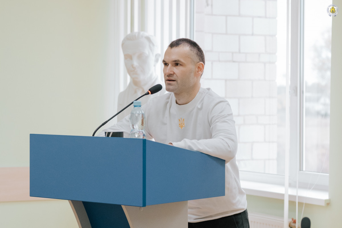 Ярослав Потапенко був багатогранною особистістю, і, серед інших виявів, проявив себе і в спорті – кікбоксингу. Про це йшлося у виступі старшого викладача кафедри спортивних дисциплін і туризму факультету фізичної культури, спорту і здоров’я, тренера Ігоря Юрченка: