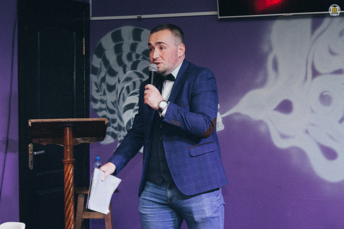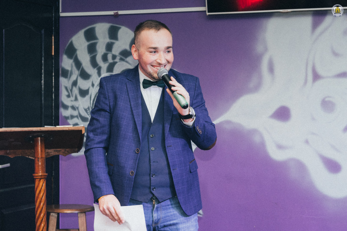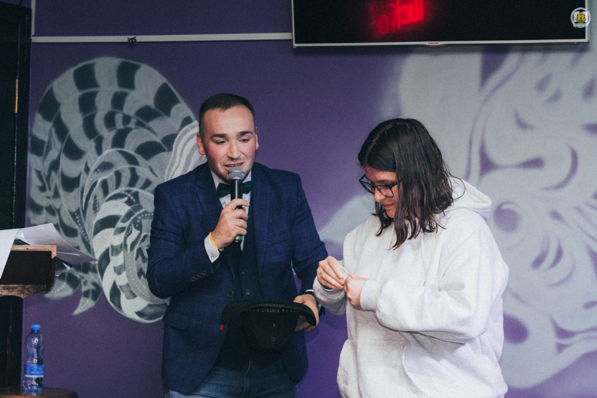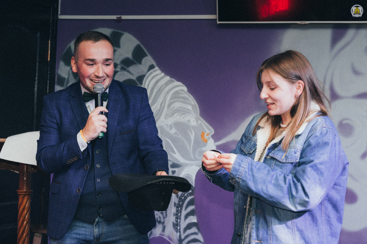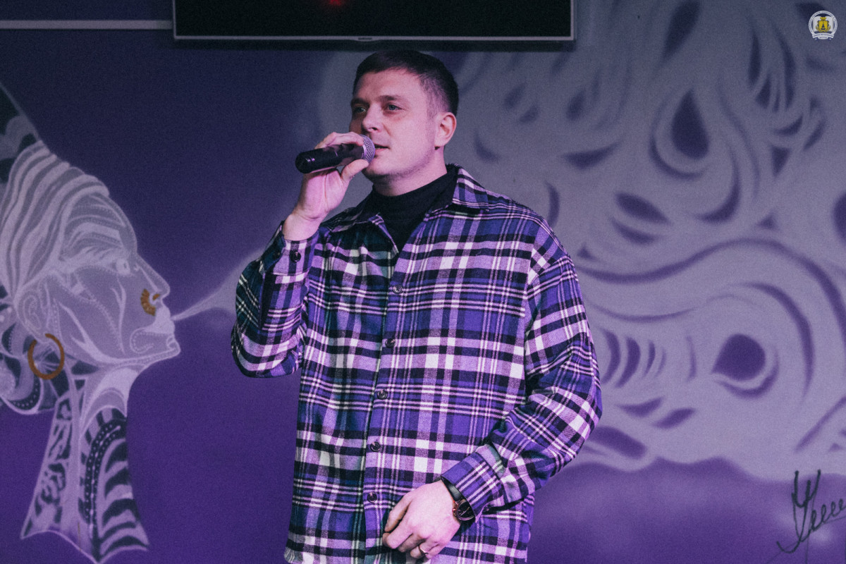 Поки організатори готувалися до церемонії нагородження, ведучий розповів про те, що у цей вечір організатори мали намір зібрати на одному майданчику не лише топ-інтелектуалів УГСП, а й зірок переяславського шоу-бізнесу – тих, хто пише і випускає на стрімінгові платформи власні пісні, знімає кліпи на них. На прикрість, левовій частці з запрошених, зважаючи на поважні причини і обставини, «засяяти» на «Брейн-Рингу» не вдалося – їх неодмінно запросять на майбутні заходи. Але один з тих, хто, свого часу, у студентські роки, «сяяв» на сковородинівській сцені, а нині повернувся до альма-матер не лише як методист Навчально-наукового центру забезпечення якості освіти університету, а й новоявлена зірка для вже нового покоління сковородинівців таки знайшов час завітати – мова про Бориса Любченка, який у цей вечір подарував присутнім свій авторський суперхіт «Солодкий мед». Ми помітили, що протягом сьогоднішнього дня її прослуховування на всіх майданчиках дещо зросли – після такого вибухового виступу інакше і не могло бути.