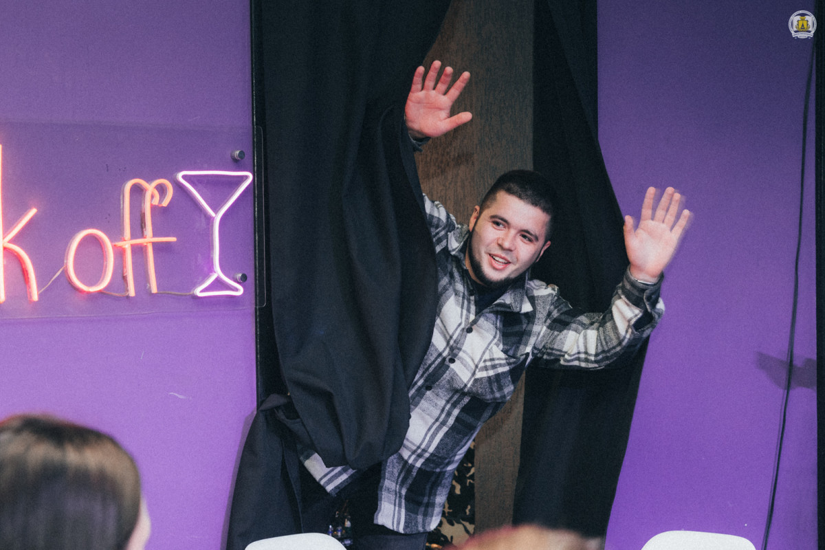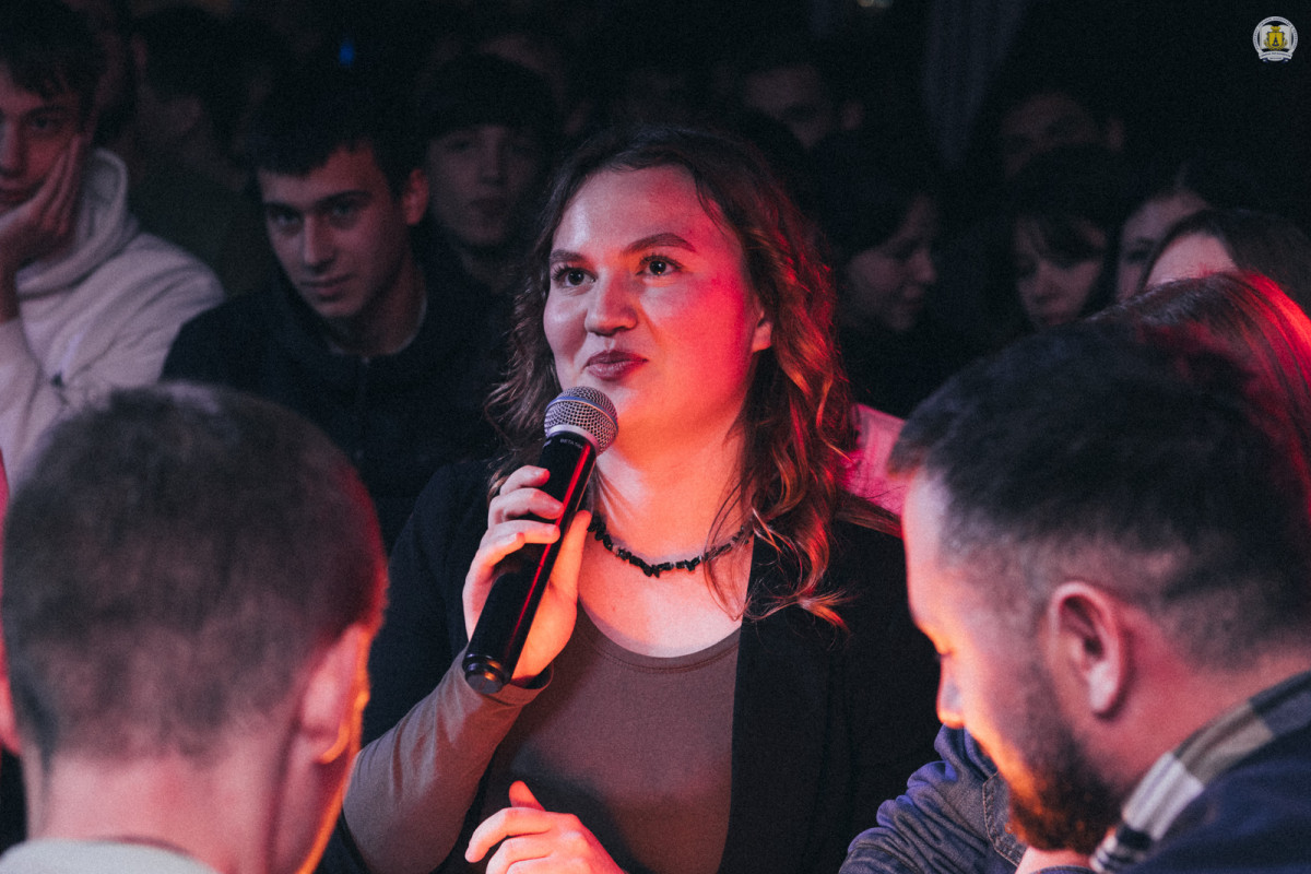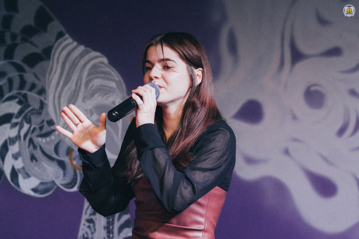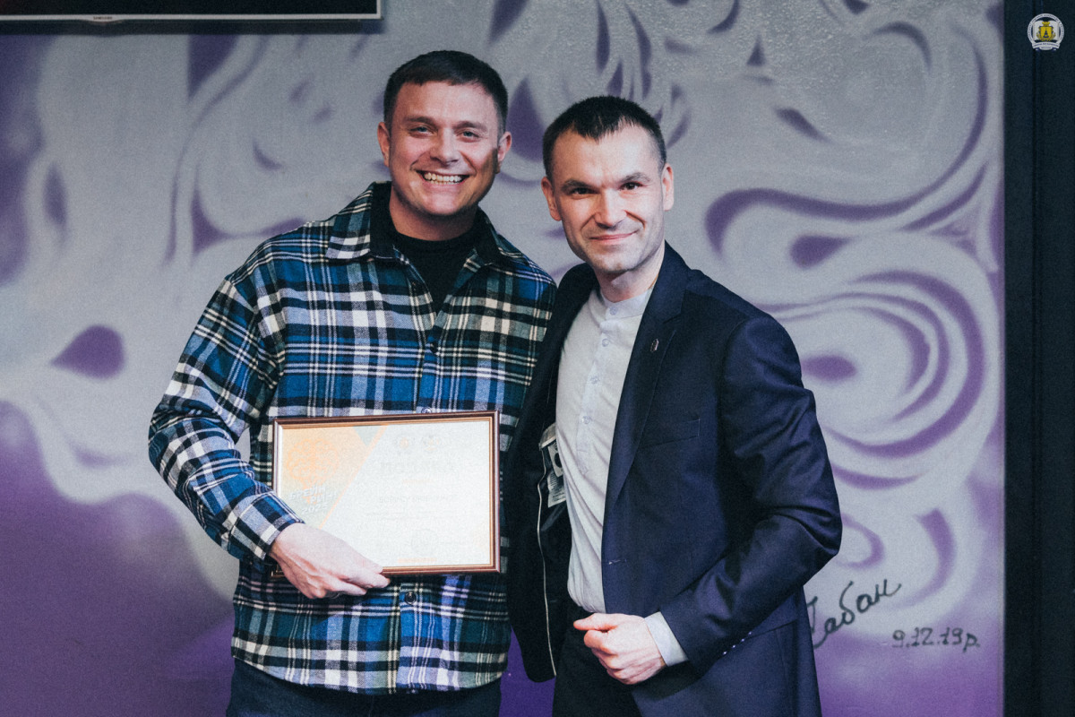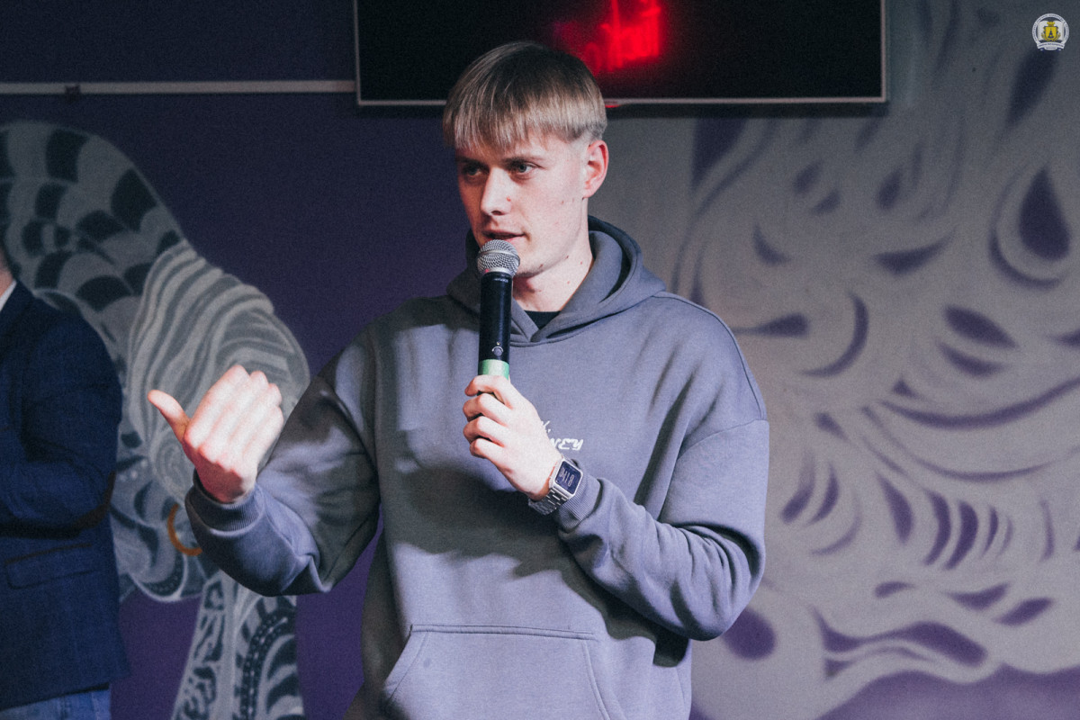 Поки організатори готувалися до церемонії нагородження, ведучий розповів про те, що у цей вечір організатори мали намір зібрати на одному майданчику не лише топ-інтелектуалів УГСП, а й зірок переяславського шоу-бізнесу – тих, хто пише і випускає на стрімінгові платформи власні пісні, знімає кліпи на них. На прикрість, левовій частці з запрошених, зважаючи на поважні причини і обставини, «засяяти» на «Брейн-Рингу» не вдалося – їх неодмінно запросять на майбутні заходи. Але один з тих, хто, свого часу, у студентські роки, «сяяв» на сковородинівській сцені, а нині повернувся до альма-матер не лише як методист Навчально-наукового центру забезпечення якості освіти університету, а й новоявлена зірка для вже нового покоління сковородинівців таки знайшов час завітати – мова про Бориса Любченка, який у цей вечір подарував присутнім свій авторський суперхіт «Солодкий мед». Ми помітили, що протягом сьогоднішнього дня її прослуховування на всіх майданчиках дещо зросли – після такого вибухового виступу інакше і не могло бути.