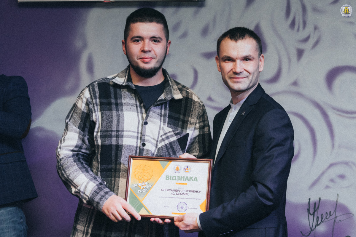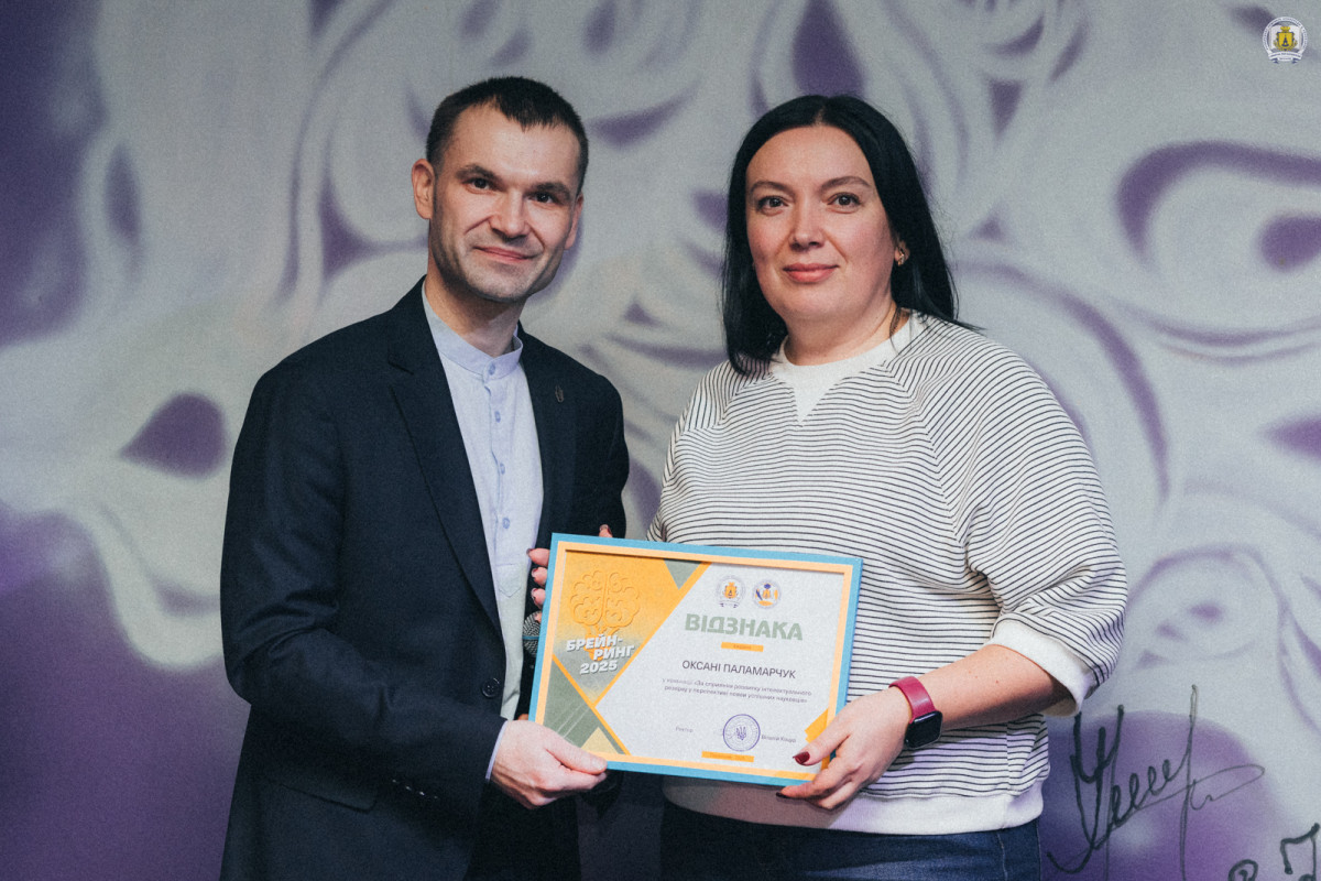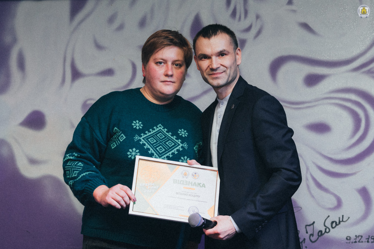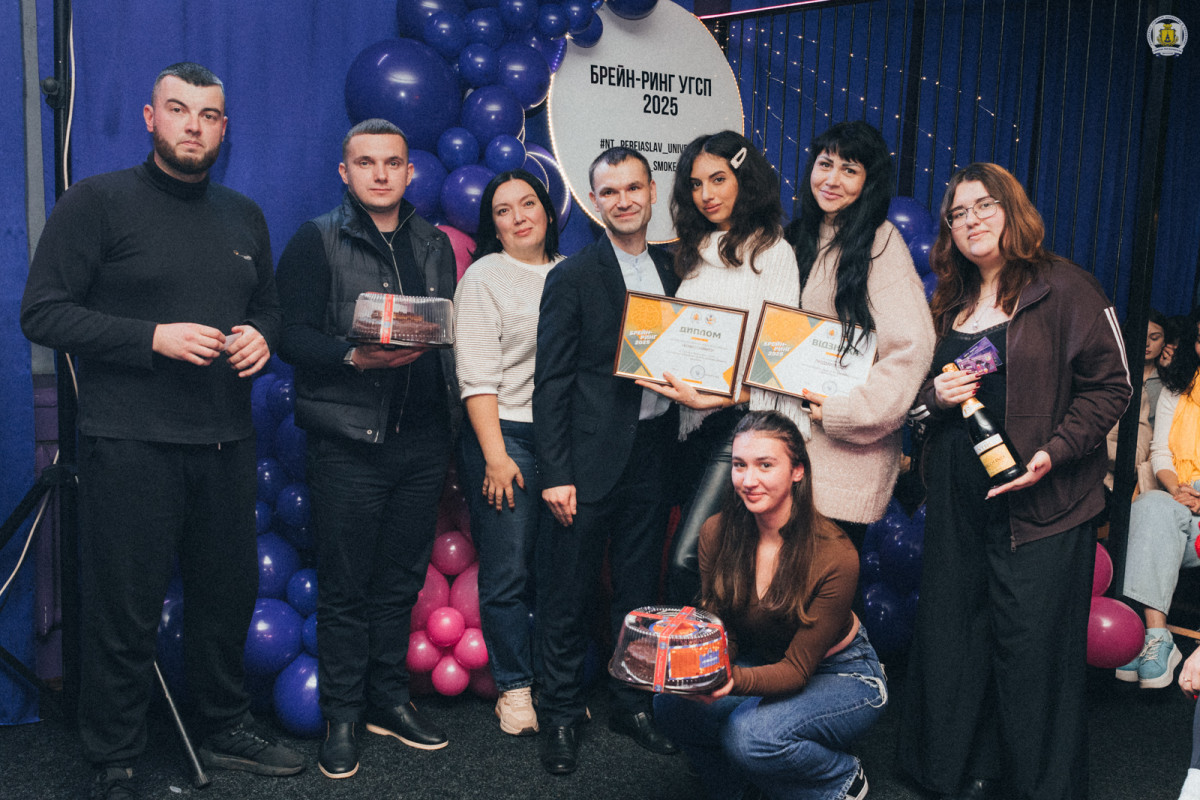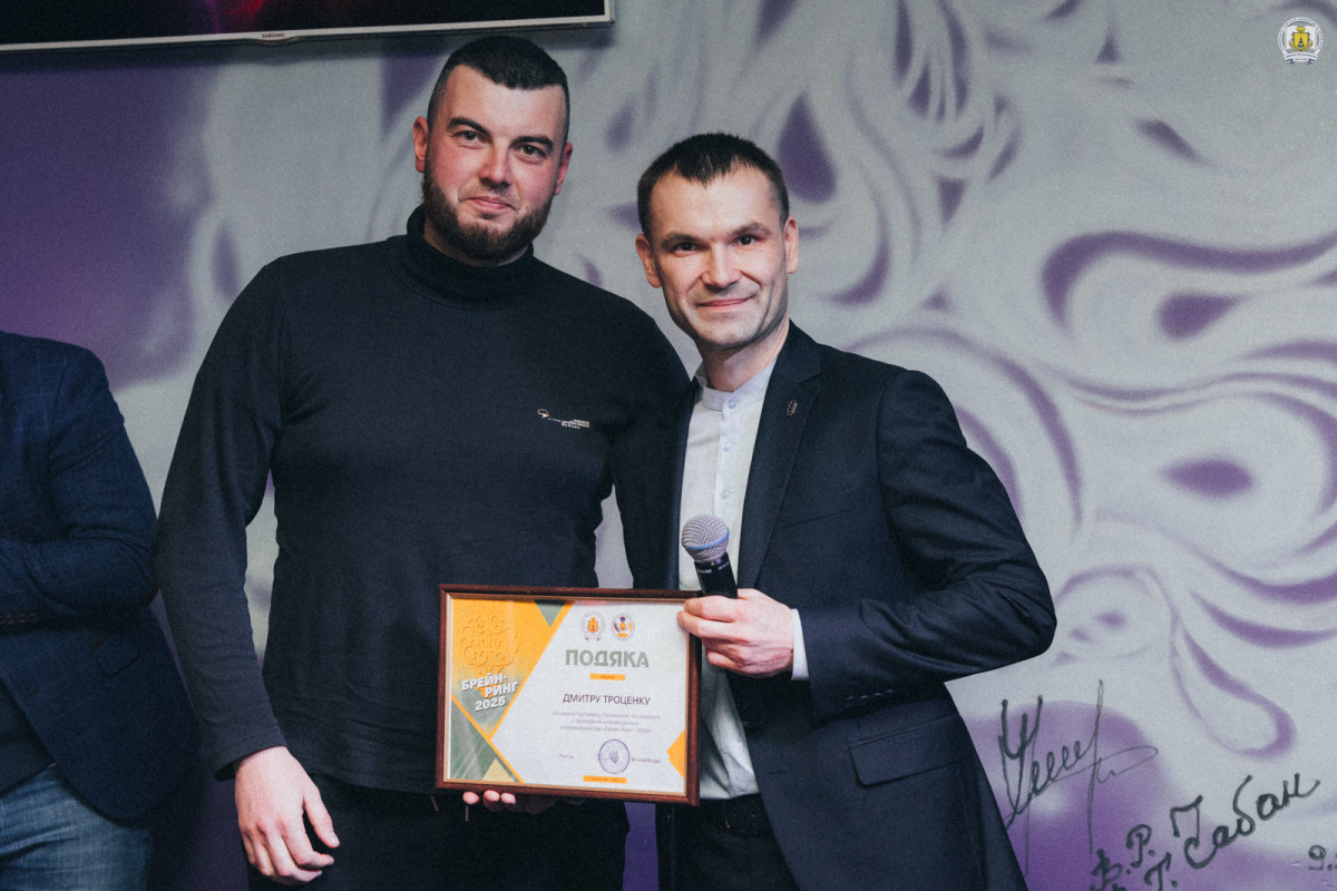 Нарешті перейшли до нагородження партнерів і спонсорів, команд і їх наставників, причетних до організації гри. Спершу були номіновані ті, до кого цього вечора доля була не настільки прихильною у плані перемог за ігровим столом, відповідно до зайнятих місць – від восьмого до четвертого: команді команди факультету гуманітарної освіти та соціальних технологій «Команда спонсорована Фондом Спідвагона» у «Брейн-Ринг – 2025» присудили номінацію ««Роберт би вами пишався», а наставнику Олексію Остапчуку – номінацію «Чемпіон інтелектуальних забігів»; команді факультету української та іноземної філології «Клан Сопрано» було вручено нагороду у номінації «Мовчання – золото, але вони обирають дієслово», а їх наставниці Людмилі Созі у номінації «Діамант ерудиції: 64 грані блиску в короні Брейн-Рингу»; команді соціально-психологічного факультету «Прометей» – у номінації «Ерудитам, що віддали все (крім печінки) за вогонь знань», а її наставниці Олені Черняковій – у номінації «Майстриня психологічних мозаїк: гуртує особистості задля перемоги»; команді факультету мистецтва, менеджменту, педагогіки і психології «Генії під прикриттям» відзначили номінацією «За найвитонченіше прикриття ерудиції мистецтвом», а її наставницю Наталію Мороз – у номінації «Кодувальниця перших пікселів розуму: інформаційна грамотність задля перемоги», команду факультету фізичної культури, спорту і здоров’я «Сила духу» заохотили у номінації «Біцепси знань і прес аргументів» та її наставницю Ірину Юзковець – у номінації «Триочкове потрапляння у кошик знань».