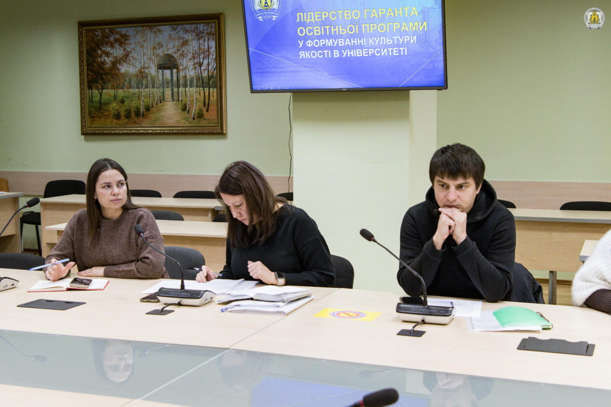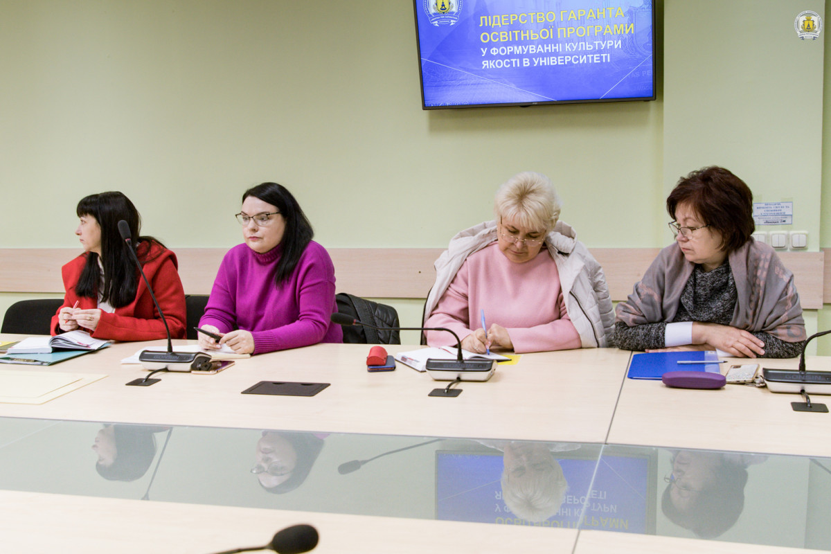 Під час обговорення Олена Миколаївна та Олена Федорівна акцентували увагу на ключовій ролі гаранта освітньої програми у формуванні культури якості в університеті. Було визначено основні функції гаранта під час створення освітньої програми та забезпечення пакету супровідних матеріалів для її акредитації. Окремо розглянуто етапи підготовки документів, послідовність дій гаранта і групи забезпечення та встановлені дедлайни підготовки пакету супровідних матеріалів.