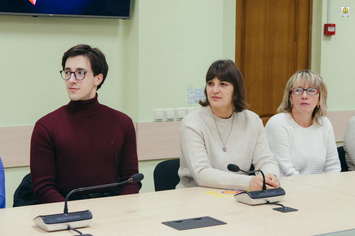 «Є люди-особистості, які несуть сенси, змушують плакати, думати, дивитися на світ інакше. Сьогодні з нами саме така людина – справжній українець-патріот Богдан Михайлович Бенюк!», – представив гостя на початку розмови у конференц-залі імені Василя Сухомлинського модератор зустрічі, провідний фахівець відділу інформаційних технологій та зв’язків з громадськістю Олександр Молоткін, свідомо оминаючи десь три сторінки розписаного тексту, підготовленого організаторами для представлення актора.