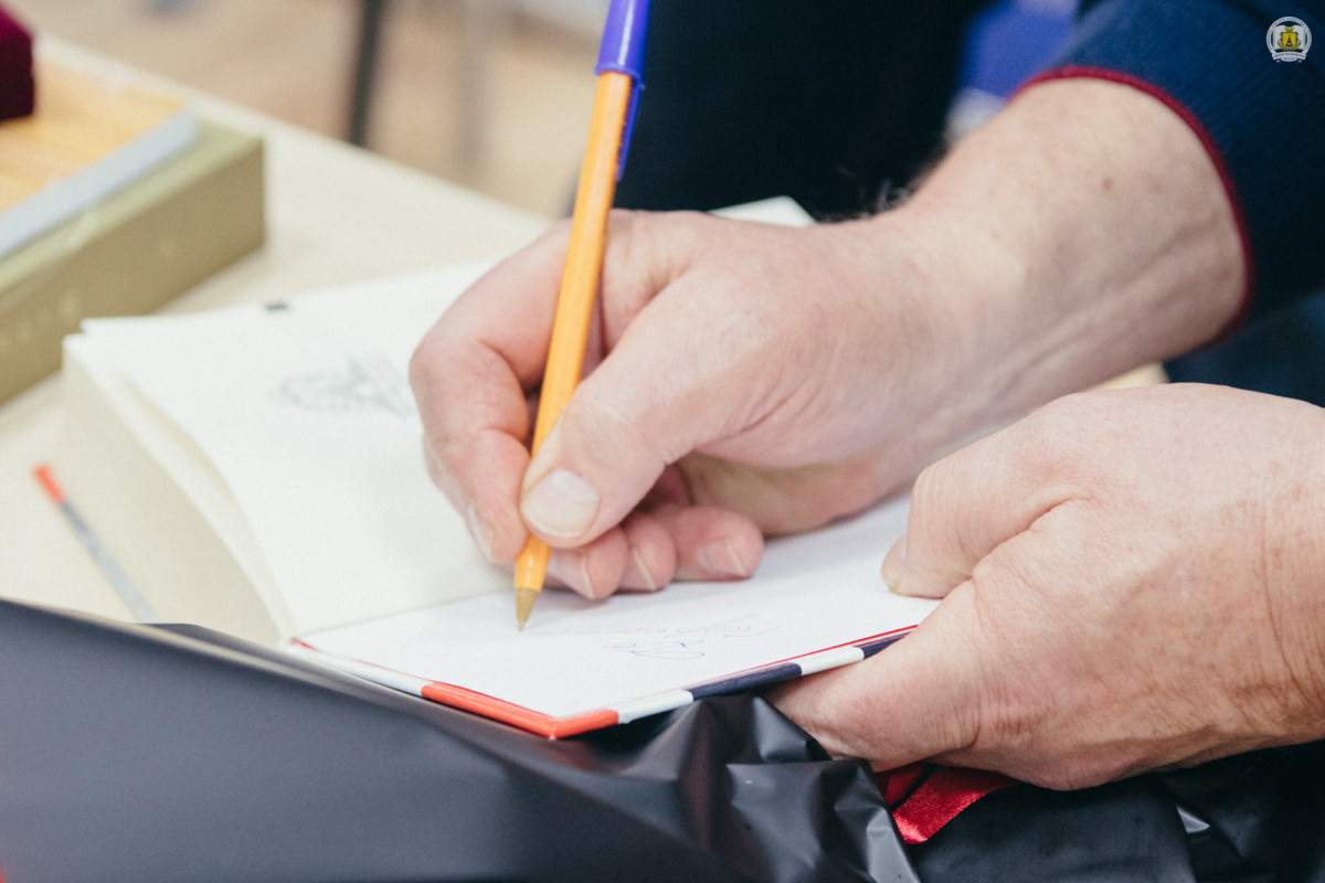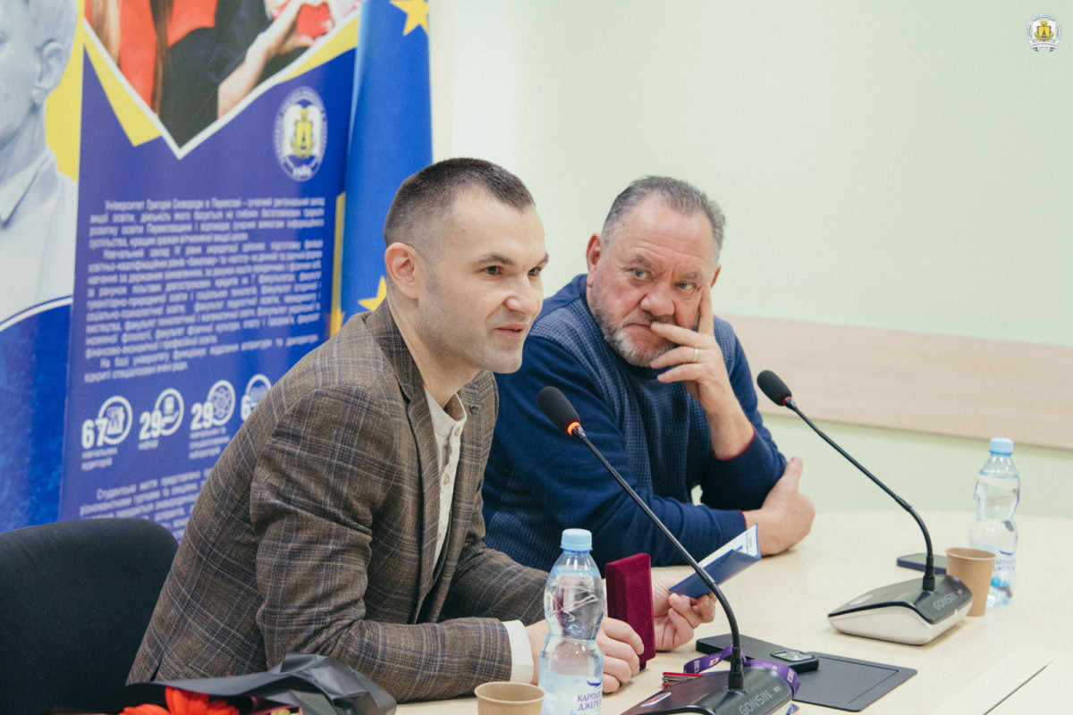 Розмова з впізнаваним та улюбленим кількома поколіннями народним артистом України, яку сковородинівцям та містянам анонсували ще 22 вересня, переносилася кілька разів через виправдано навантажений графік актора – він активно грає в театрі, очолює столичний Театр на Подолі та кафедру в Київському національному університеті театру, кіно і телебачення імені Івана Карпенка-Карого, активно знімається і має лише один вихідний у тижні, який незрідка теж зайнятий справами або виставами, які переносяться через повітряні тривоги. Врешті, кількамісячні зусилля директорки книгозбірні Ольги Шкири справді було вартим того, і знайшли відгук у кількох десятків присутніх сковородинівців та містян, зокрема музейників. Пресслужба університету вже готова переповісти та показати якою видалася ця зустріч.