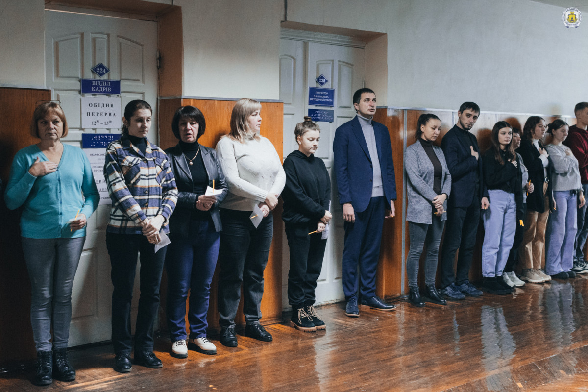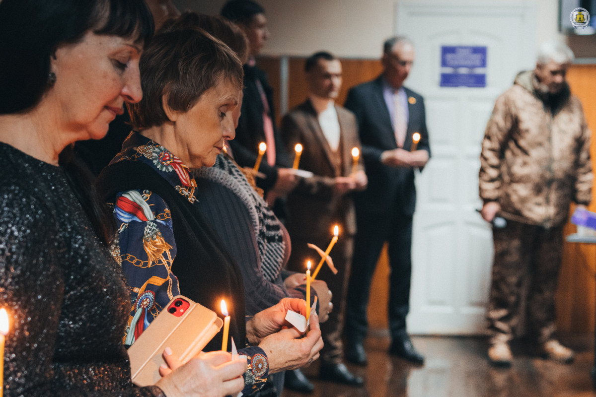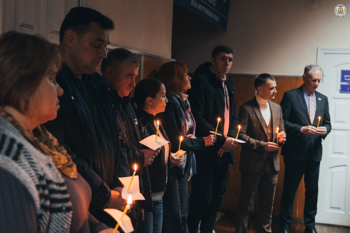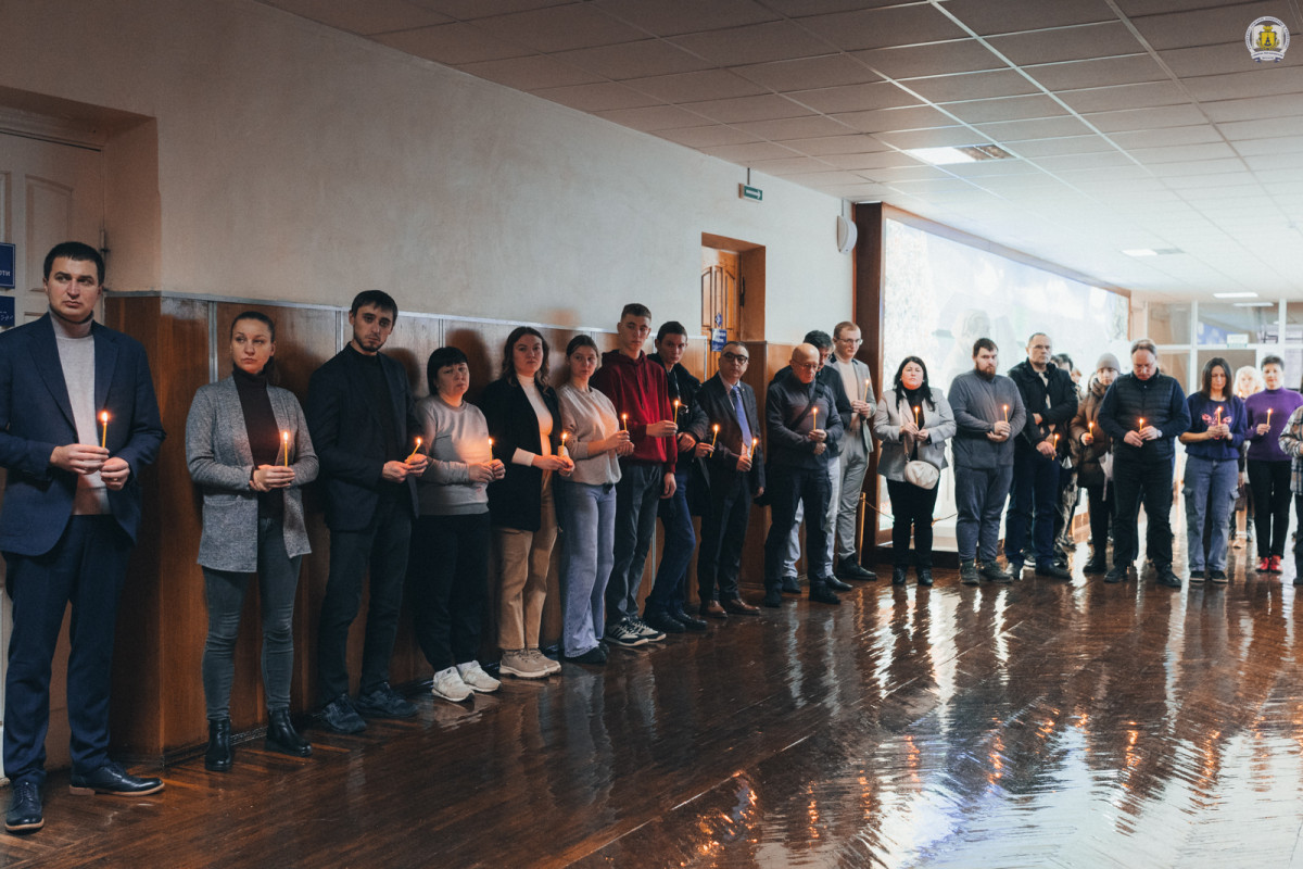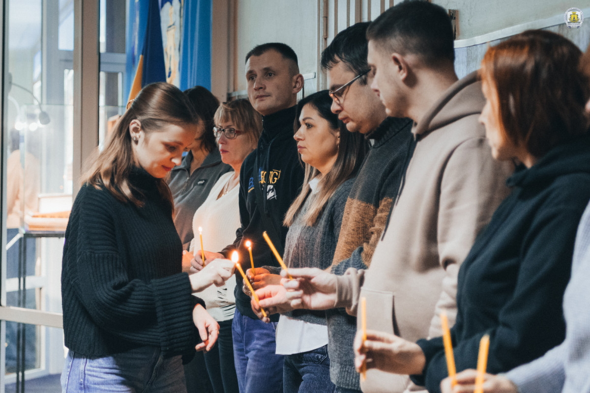 На завершення зібрання всі присутні ще раз схилили голови в пам’ять про загиблих. Свічки, запалені в честь полеглих, стали символом світлої пам’яті та вдячності. Кожен згадував своїх рідних, близьких і знайомих. А особливу згадку отримали випускники та здобувачі, зокрема нашого університету, які поклали життя під час революції і війни – на фронті і в тилу.