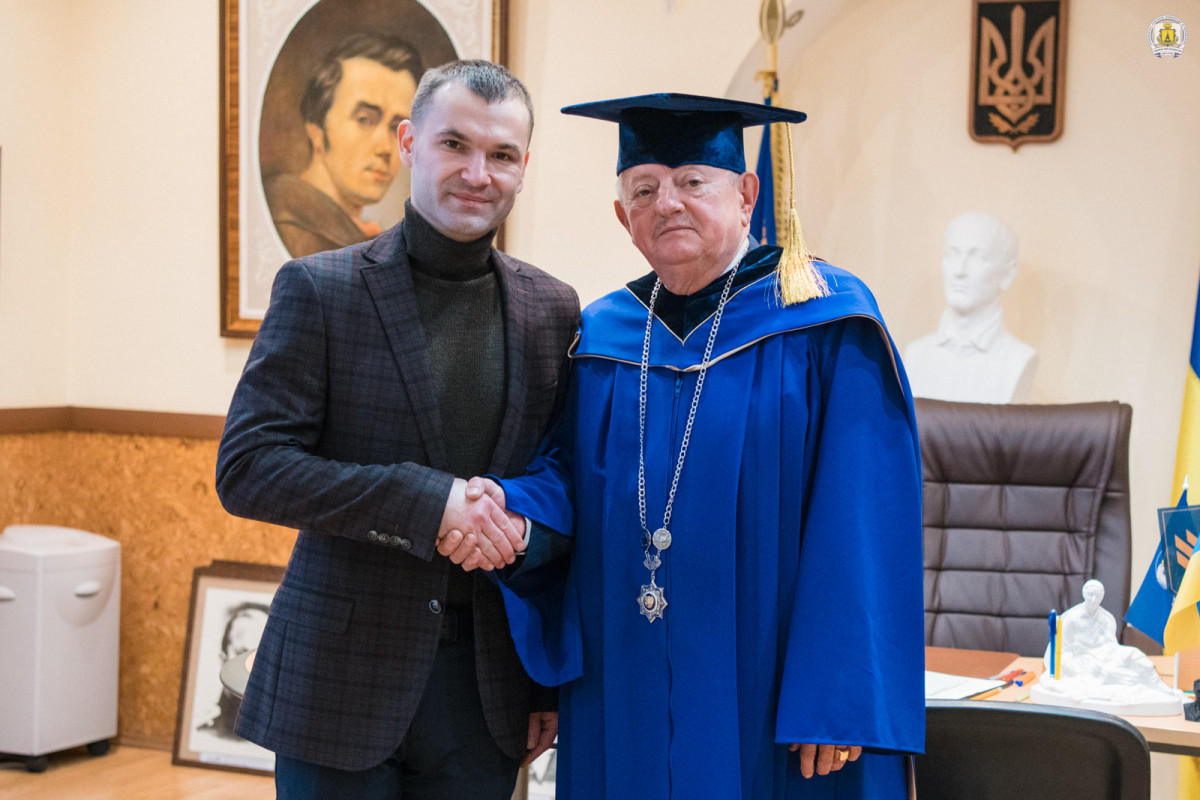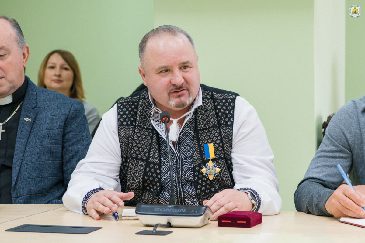 У свою чергу, завідувач кафедри культурології, релігієзнавства та теології ЧНУ імені Юрія Федьковича Микола Шкрібляк – у цей день його нагородили університетською відзнакою «Орден князя Володимира Мономаха»: