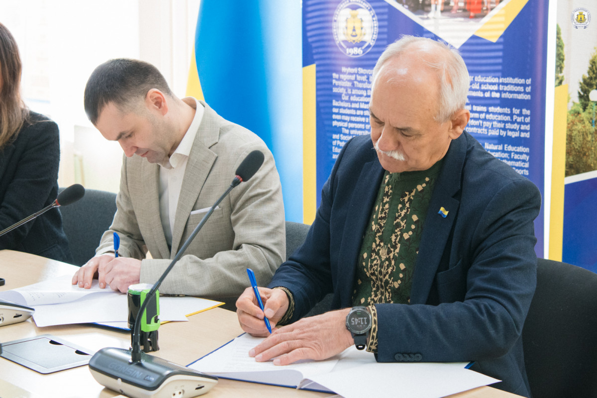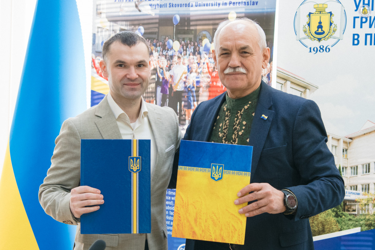 Одним із ключових моментів церемонії стало скріплення підписами Віталія Вікторовича та Вячеслава Володимировича договору про співпрацю між Університетом Григорія Сковороди в Переяславі та Переяславською міською радою.
