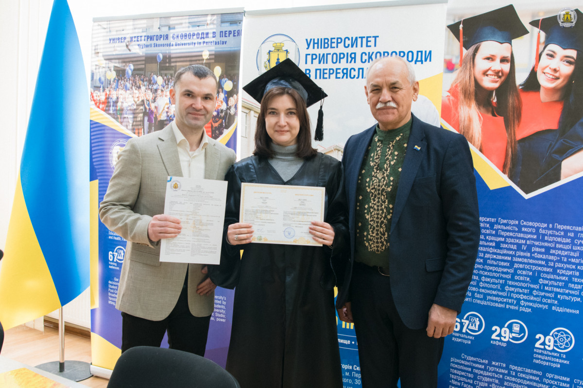 «Я давно мріяла отримати освіту, яка веде і служить людям. Дякую за те, що ви відкрили для мене цю можливість. Нехай ці дипломи принесуть усім нам якнайбільшу користь, нові можливості та кар’єрні перспективи. Вдячна нашим викладачам за їх терпіння, за допомогу і підтримку, знання і досвід. Бажаю всім вам лише найкращого – самого доброго і світлого, перемоги, здоров’я, благополуччя і спокою в душі, радості в родині», – розпочала блок виступів випускників Вікторія Коваленко.
