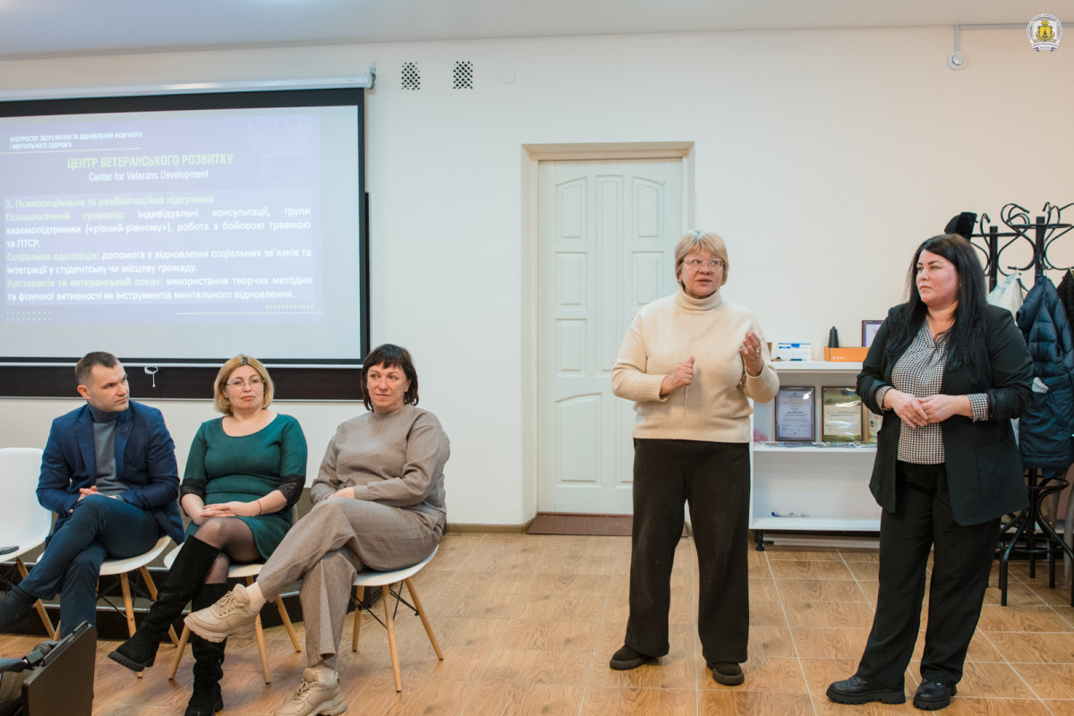 Надалі керівниця Центру ветеранського розвитку Тетяна Кузьменко ретельніше розповіла про цей структурний підрозділ університету, окреслила напрямки його роботи.