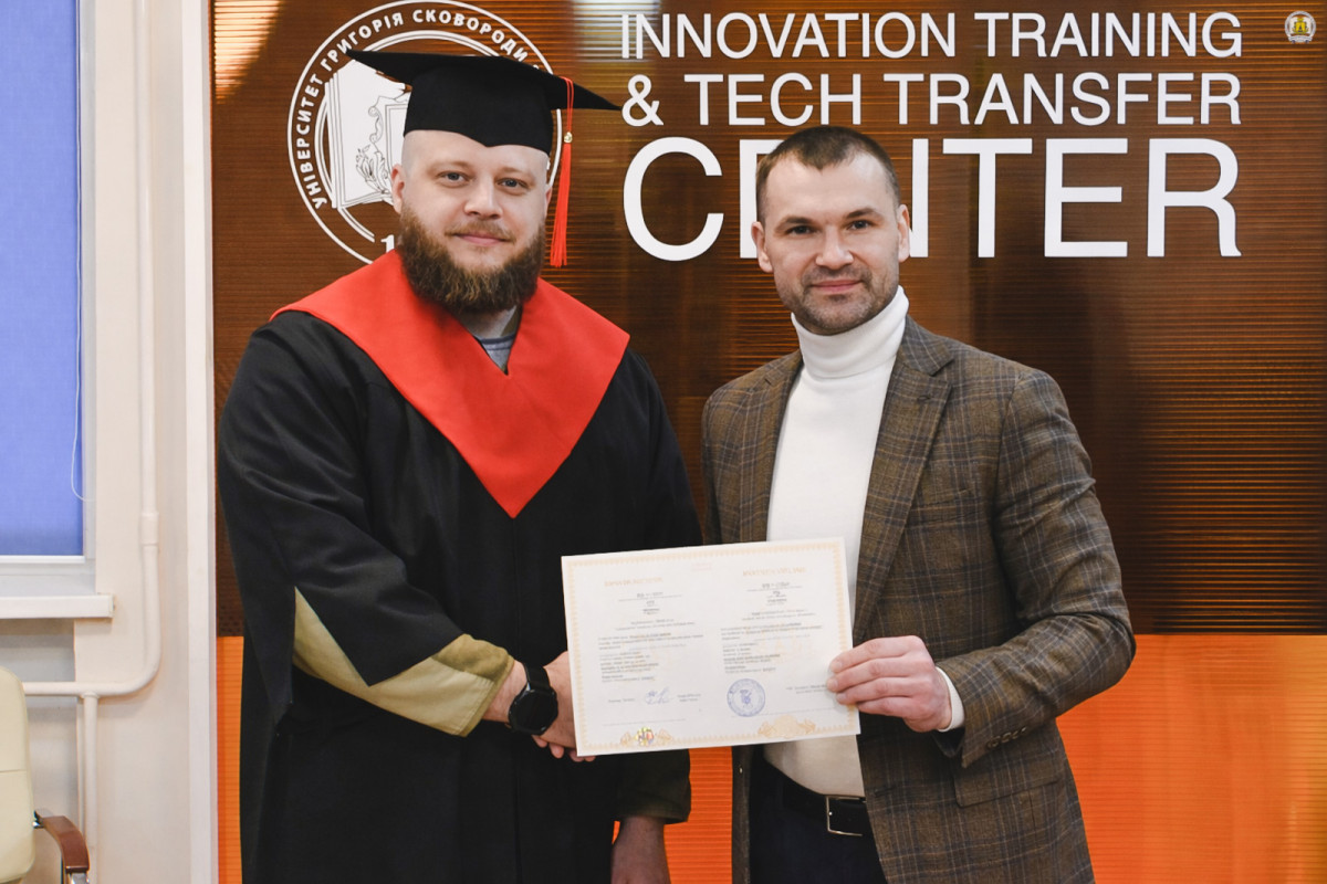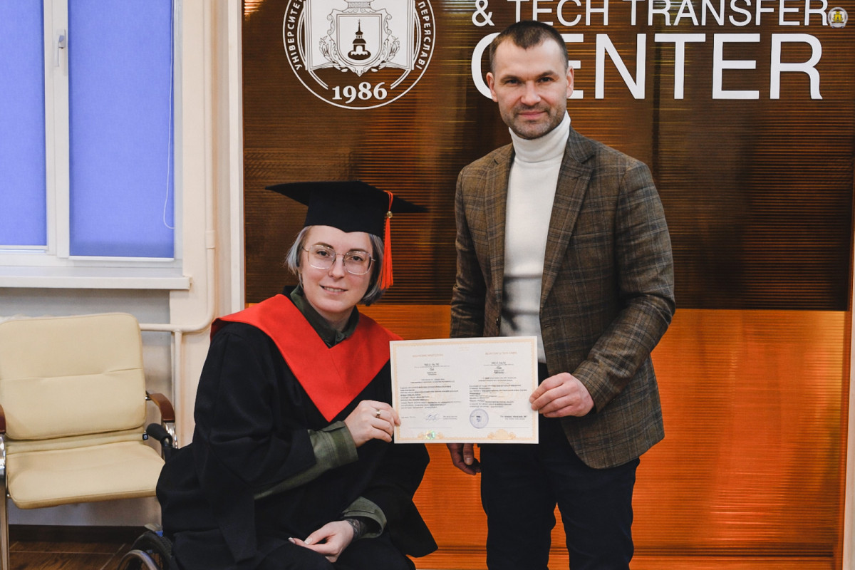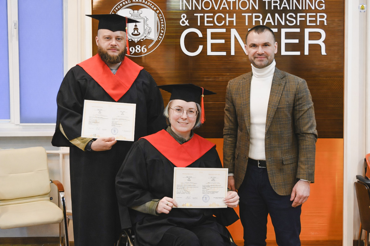Разом із Яною диплом магістра з практичної психології отримав ще один «госпітальєр» – Ілля Сапожко. Церемонія вручення дипломів стала символічним моментом: у день національного болю та пам’яті двоє людей, які щодня рятують життя та борються за країну, офіційно завершили свій освітній шлях в alma-mater.
