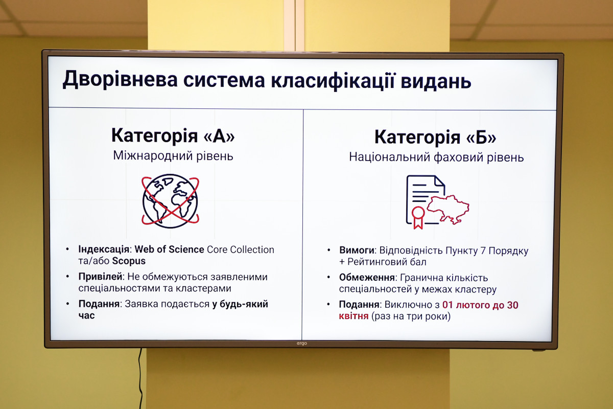 Під час зустрічі було детально проаналізовано ключові зміни до Порядку формування Переліку наукових фахових видань України. Особливу увагу учасники приділили оновленим вимогам до складу редакційних колегій, прозорості процедур рецензування, забезпеченню академічної доброчесності, наявності чітко визначеної редакційної політики, вимогам до оприлюднення інформації на вебсайтах видань, дотриманню періодичності виходу номерів.