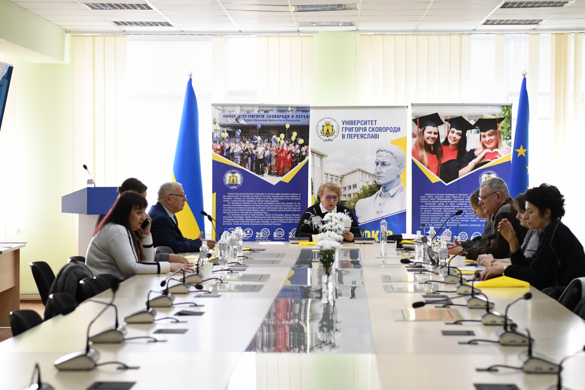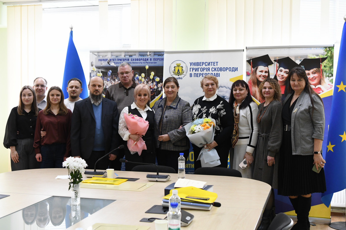 5 березня 2026 року відзначилося важливими науковими подіями для Університету Григорія Сковороди в Переяславі. У конференц-залі імені Василя Сухомлинського та Інституті міжнародної освіти та співпраці з бізнесом (аудиторія №100) відбулися засідання разових спеціалізованих вчених рад. До захистів було успішно прийнято дві роботи – майбутньої докторки філософії (PhD) за спеціальністю 281 «Публічне управління та адміністрування» – Лаби Олени Сергіївни на тему «Цифрова трансформація менеджменту людських ресурсів публічного управління в умовах глобалізаційних викликів», а також майбутньої докторки педагогічних наук за спеціальністю 13.00.04 «Теорія і методика професійної освіти» Трускавецької Ірини Ярославівни на тему «Теоретичні і методичні засади професійної підготовки майбутніх учителів природничої освітньої галузі».