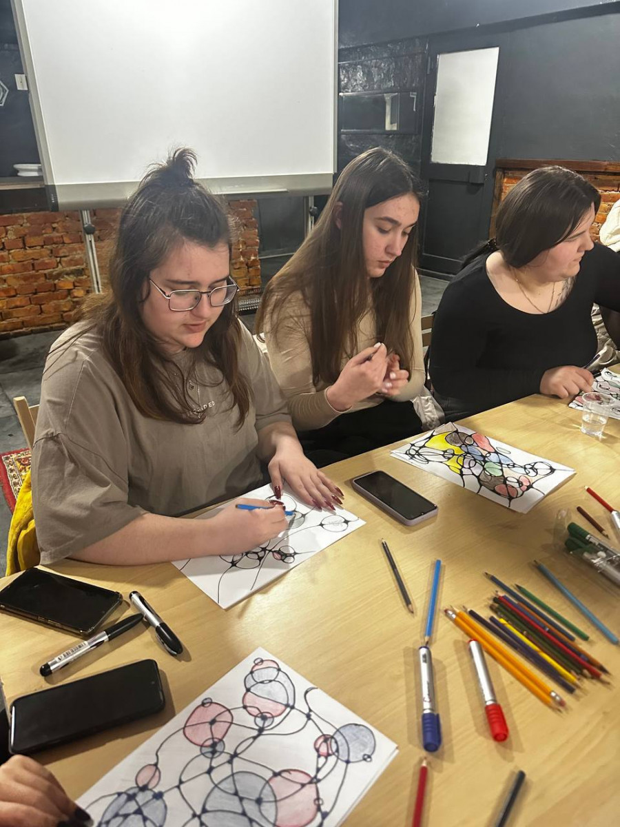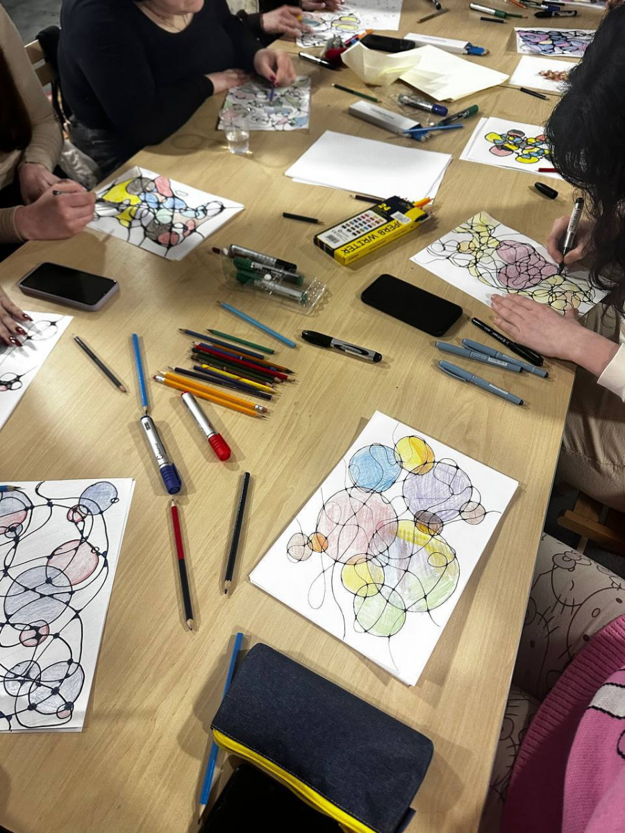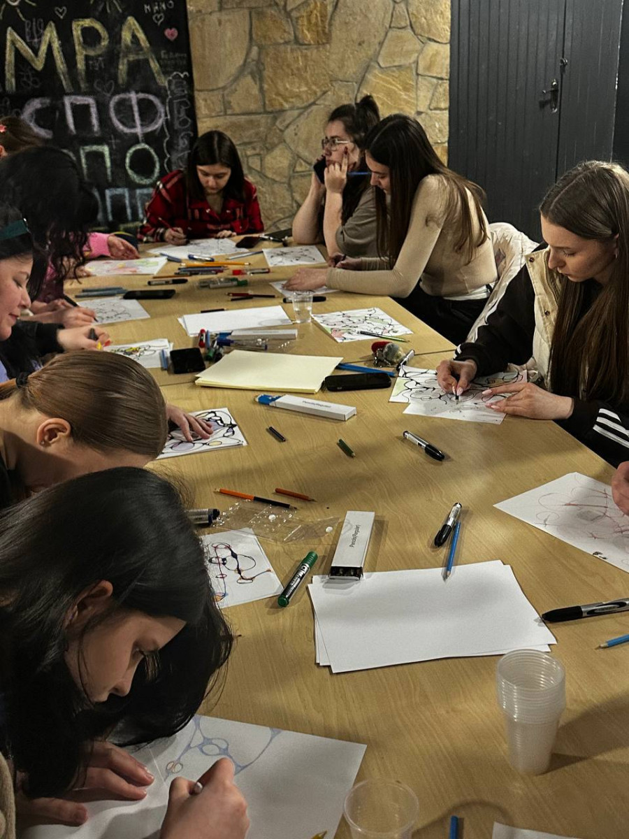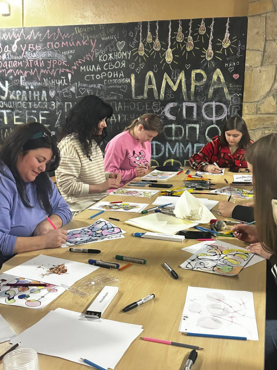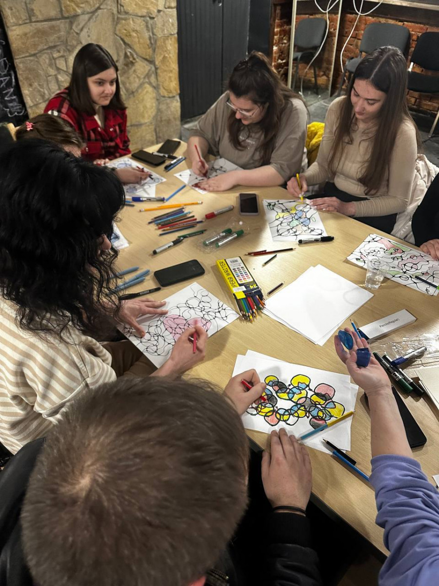 Завершився захід написанням фраз-активацій на звороті робіт, які тепер слугуватимуть учасникам візуальними якорями спокою.
