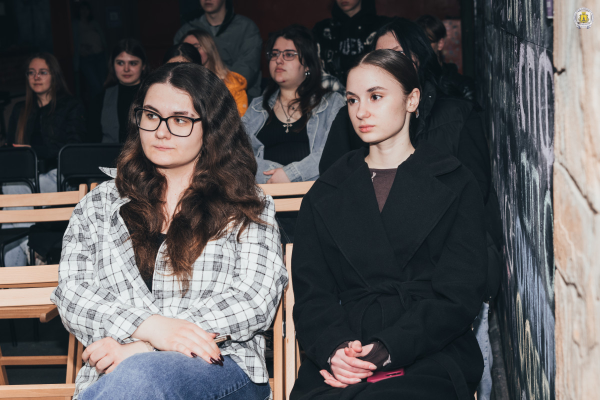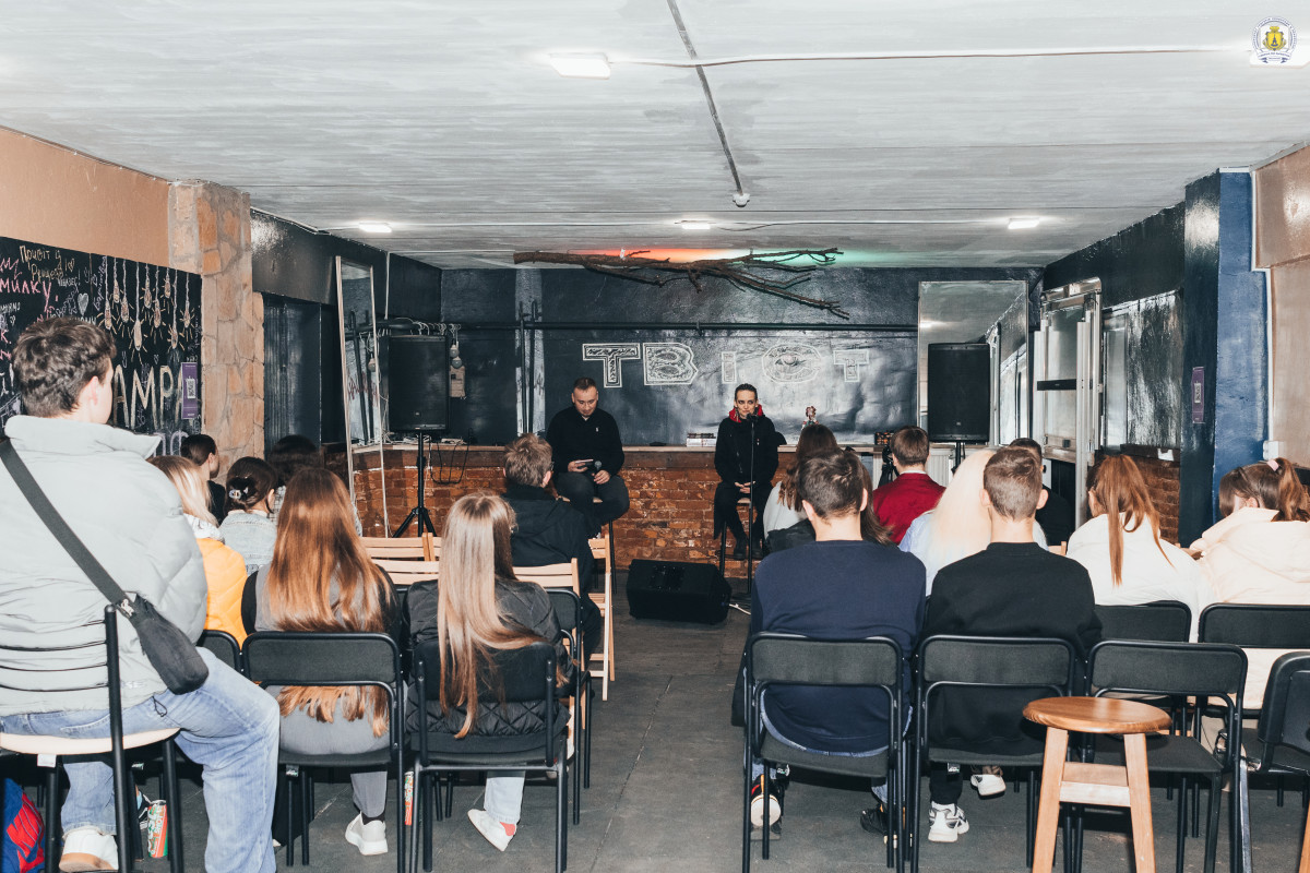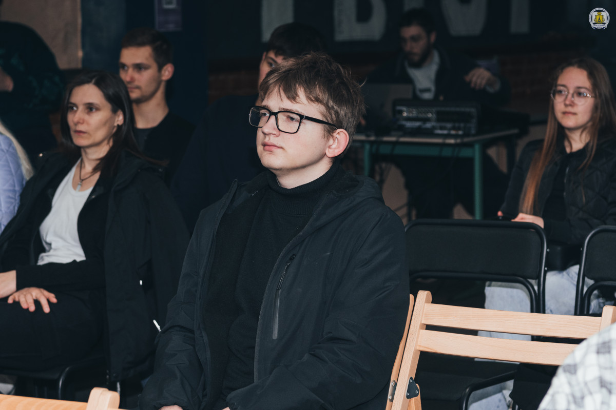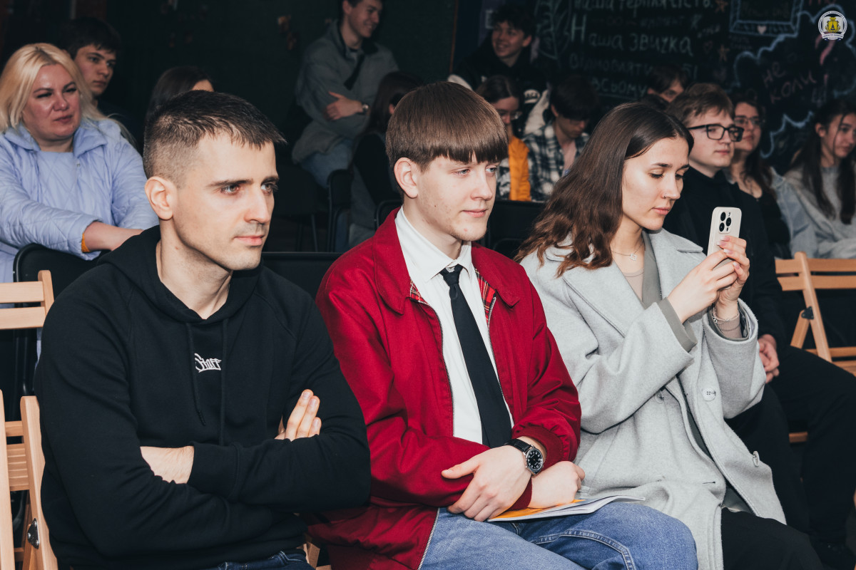 Зустріч модерував координатор гостьових проєктів університету, провідний фахівець відділу інформаційних технологій та зв’язків з громадськістю Максим Левченко, який, найперше, подякував захисникам і захисницям України, адже, найперше, такі зустрічі нині можливі виключно завдяки їх жертовності та героїзму. Позаяк, багато з кращих воїнів, на жаль, повернулися з полів бою російсько-української війни «на щиті», він оголосив хвилину мовчання, і вся зала на мить завмерла у скорботі.