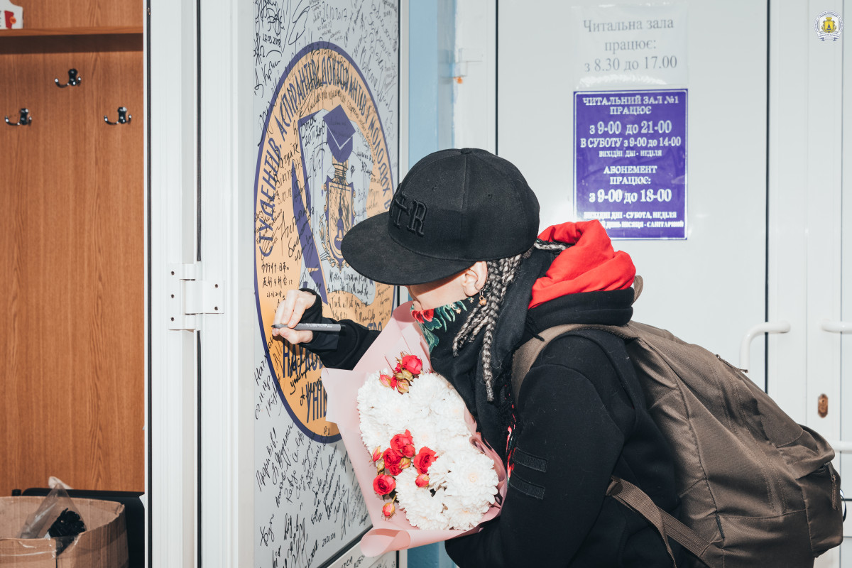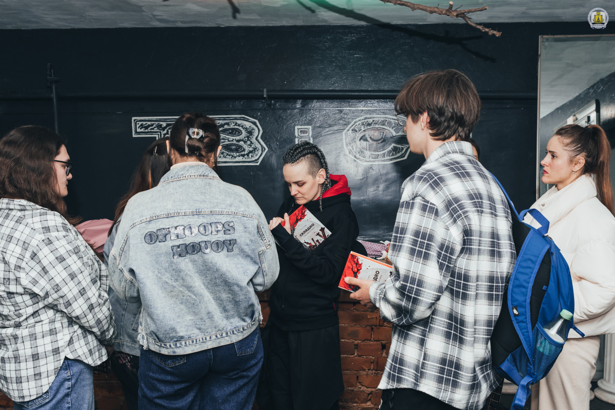 Наостанок присутні бурхливими оплесками подякували Саші, а ініціатори формату подарували гості квіти та ляльку-мотанку. Надалі Саша ще довго спілкувалася та фотографувалася зі студентами, підписувала книги та залишила свій автограф на дверях офісу Наукового товариства університету.
