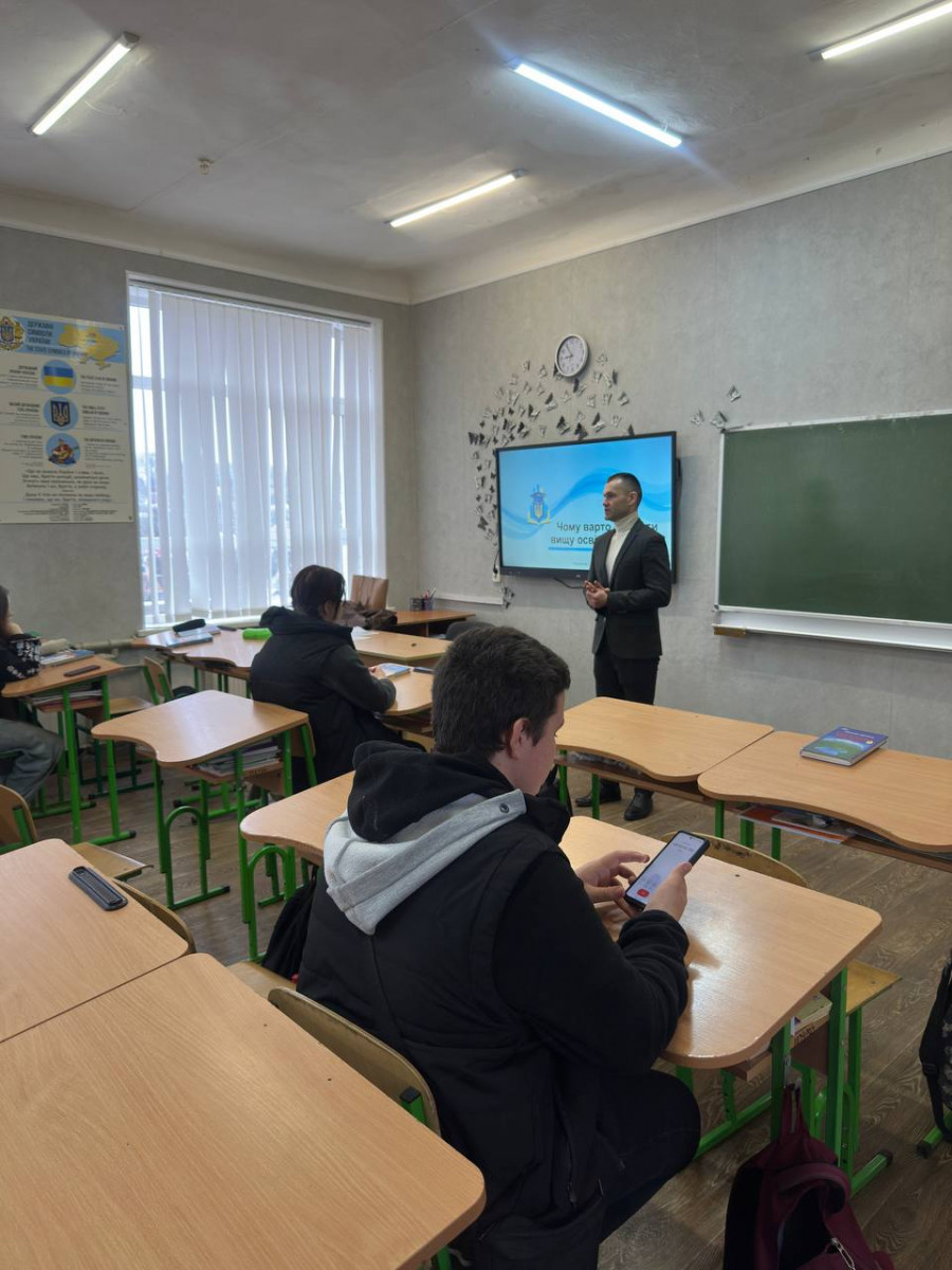 У межах візиту Віталій Вікторович та Анна Олександрівна відвідала Комунальний заклад «Канівський академічний ліцей «Гармонія» Черкаської обласної ради», де було проведено зустріч з учнями 9-11 класів. Під час спілкування старшокласників ознайомили з актуальними освітніми програмами, умовами вступу та широкими можливостями для самореалізації, які УГСП пропонує своїм студентам.