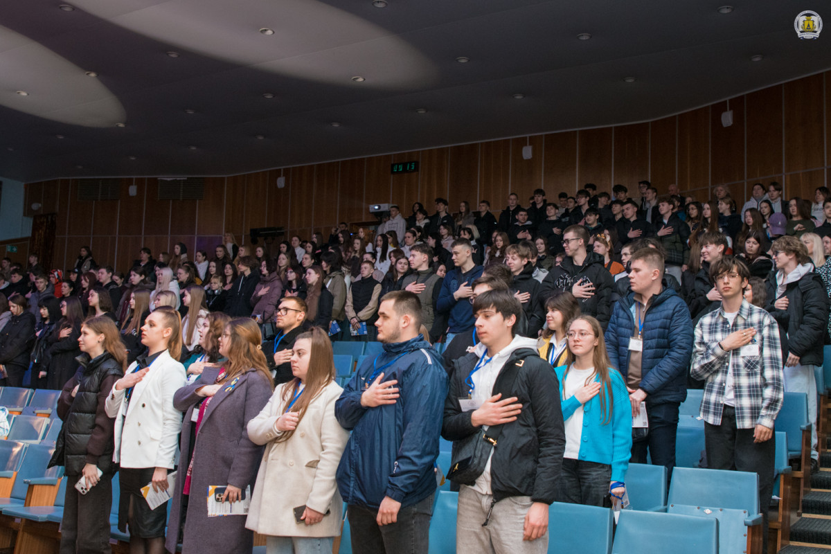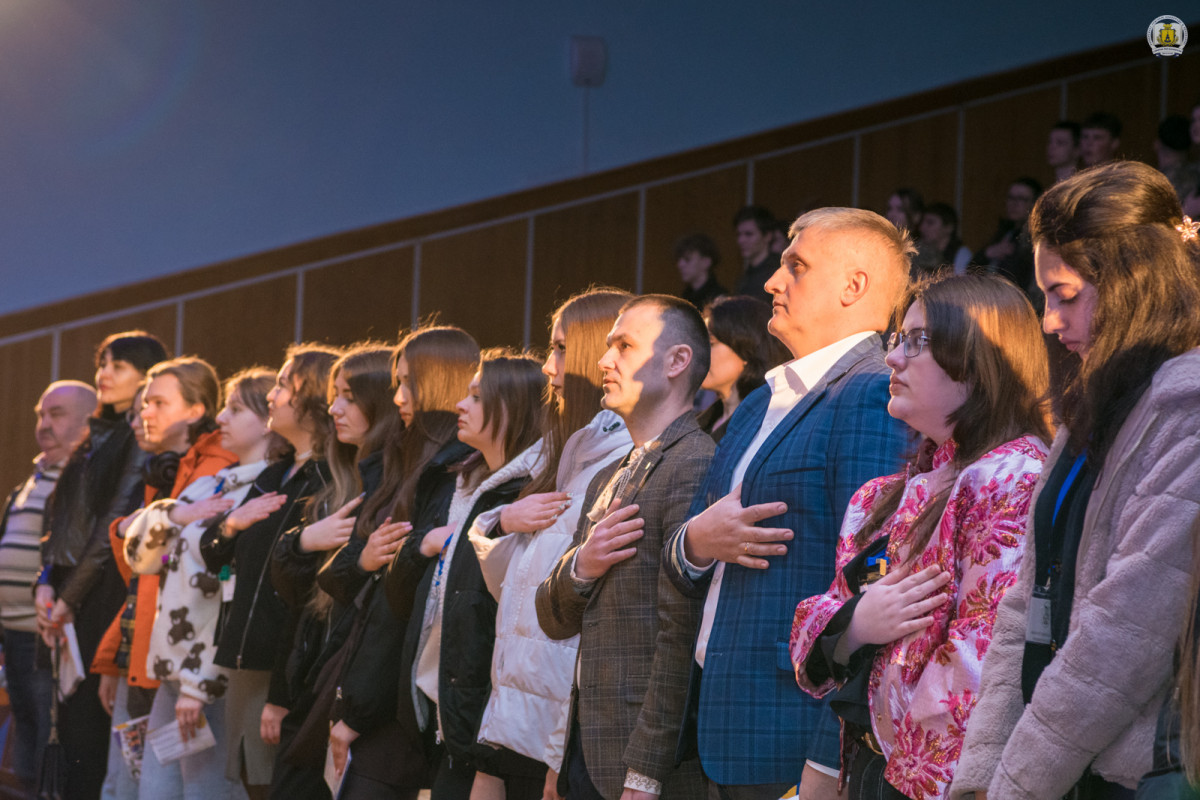 Урочистості розпочалися в актовій залі університету з виконання Державного Гімну України. Хвилиною мовчання присутні вшанували пам’ять героїв, які віддали життя за свободу та незалежність нашої держави. Провідний фахівець відділу інформаційних технологій та зв’язків з громадськістю Олександр Молоткін тепло привітав аудиторію, наголосивши, що сьогоднішній день – це чудова нагода для кожного вступника надихнутися та зрозуміти перспективи власного професійного зростання в стінах УГСП.