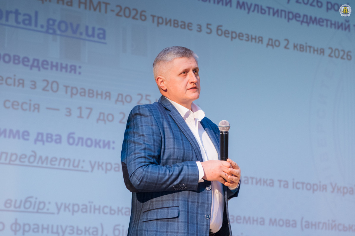 Професійні поради та роз’яснення щодо вступної кампанії 2026 року надав відповідальний секретар приймальної комісії Василь Якуба. Він наголосив, що реєстрація на Національний мультипредметний тест триватиме з 25 березня по 2 квітня, і закликав абітурієнтів виважено підходити до вибору четвертого предмета через різні вагові коефіцієнти. Василь Володимирович розповів про систему пріоритетів, пояснивши, що в цьому році кількість заяв зменшена до 10, при цьому лише 5 із них можуть бути подані на бюджет. Особливу увагу вступників звернули на те, що для участі в конкурсі на державну форму навчання необхідно мати бал не менше 130, а для спеціальностей «Економіка» та «Публічне управління» цей поріг становить 150 балів.