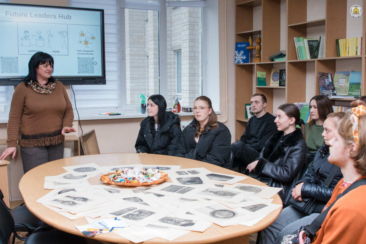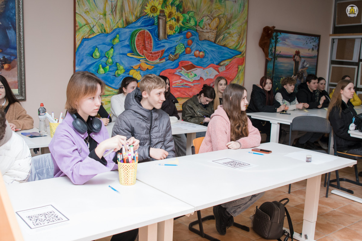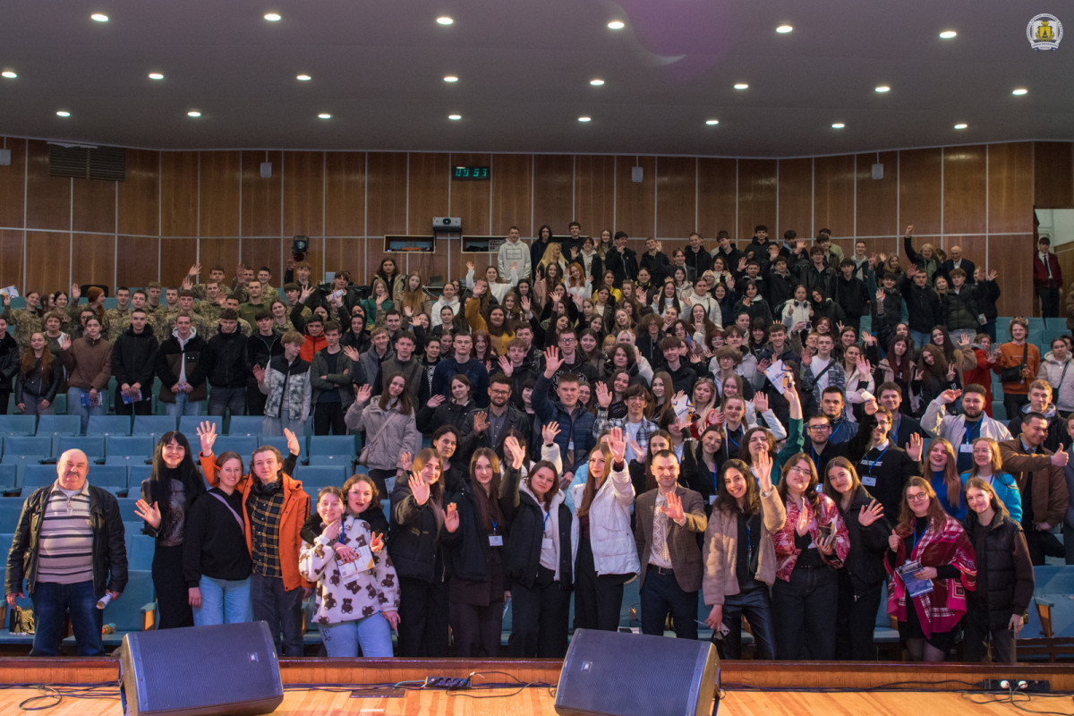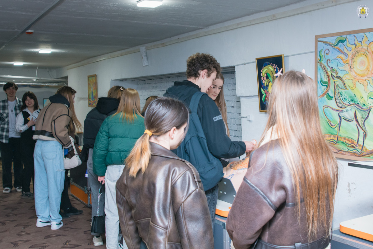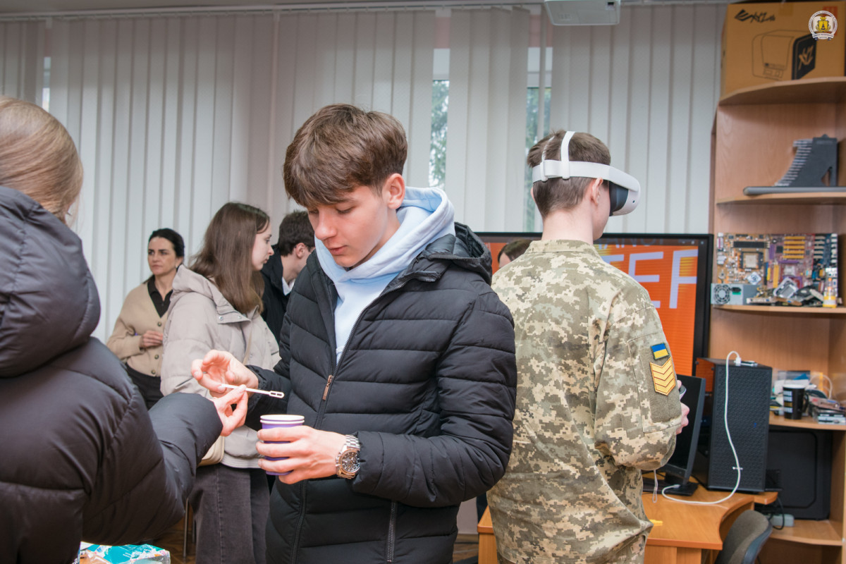 Поза тим, у перерві між заходами студентський актив залюбки знайомив майбутніх вступників з територією університету, супроводжував їх до «Музею науки» та простору виставки «Соборна українська держава – вільна і міцна», де юнацтво зустрічали фахівчині соціально-гуманітарного відділу Ольга Богданець та Діана Антоненко, а також провідний фахівець відділу інформаційних технологій та зв’язків з громадськістю Максим Левченко.