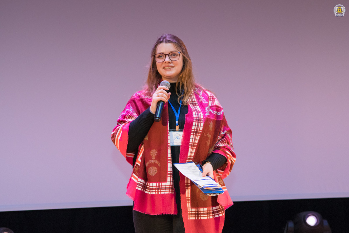 Після інформативного блоку на сцену вийшла студентка факультету мистецтва, менеджменту, педагогіки і психології Анастасія Чуприна. Вона подарувала гостям яскравий вокальний номер «Зв’язок» з репертуару MamaRika, додавши події святкового настрою та творчого драйву. Цей виступ продемонстрував, що життя в УГСП – це не лише навчання, а й можливість розвивати свої таланти та бути частиною сучасної молодіжної культури.