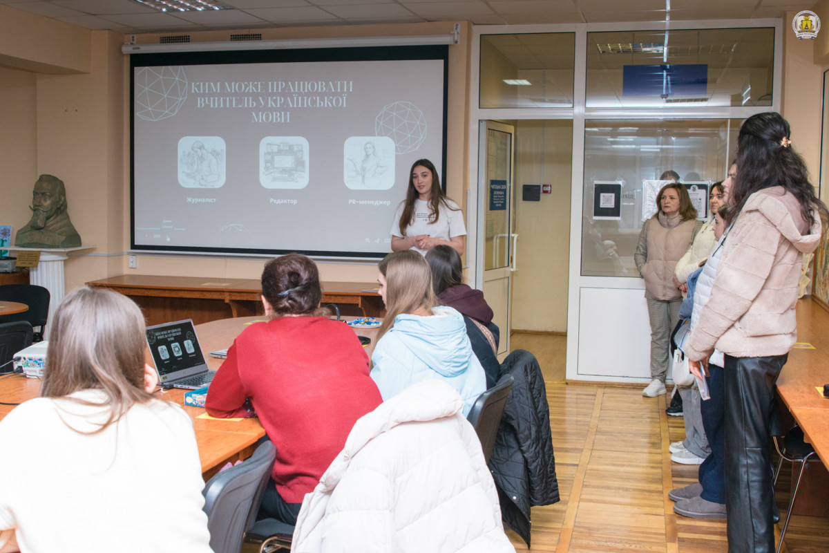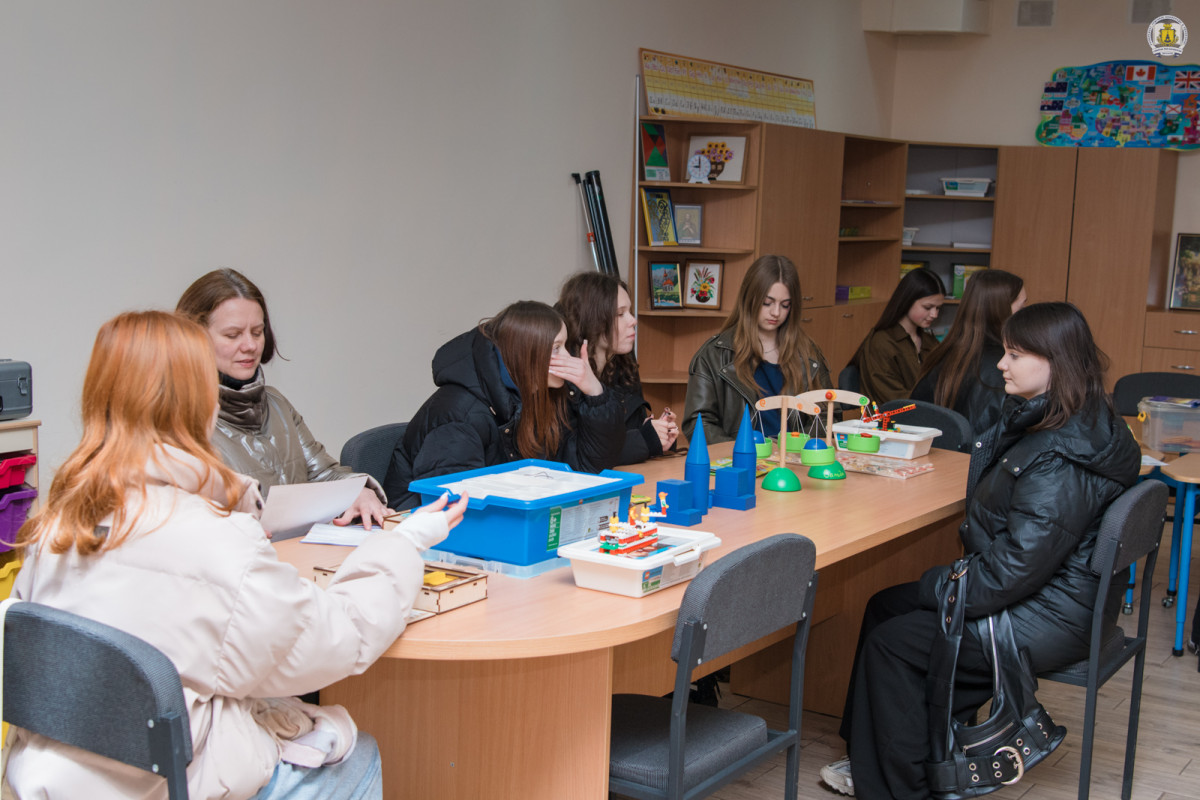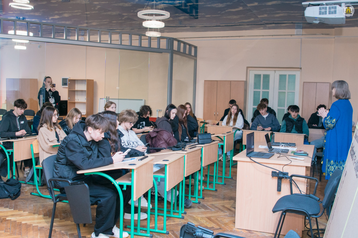 Надалі керівник відділу профорієнтації та працевлаштування Ольга Хмелькова промодерувала об’єднання учасників у групи для практичного знайомства з університетом.