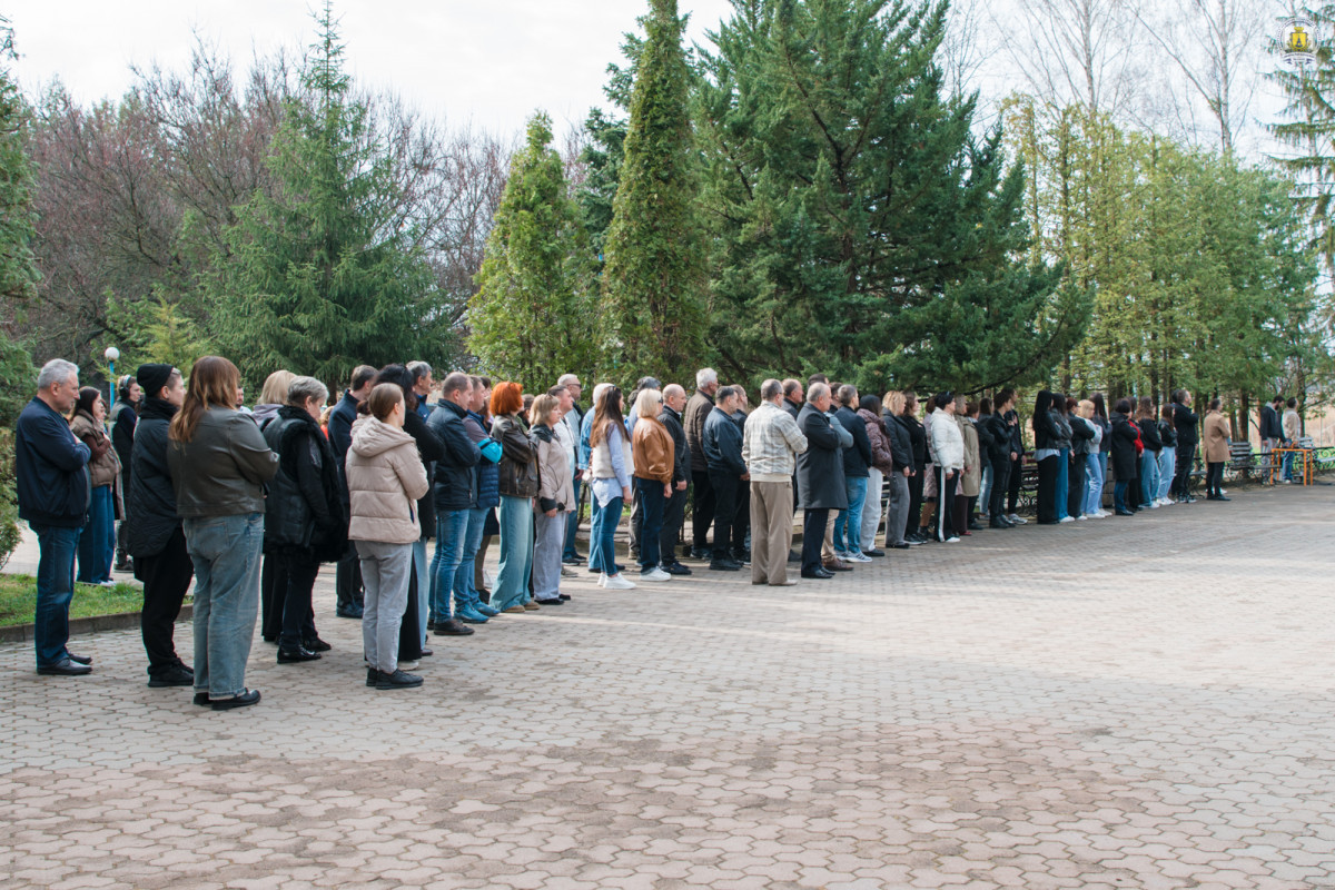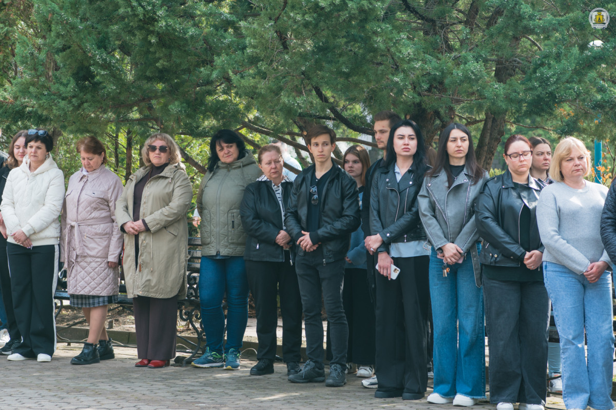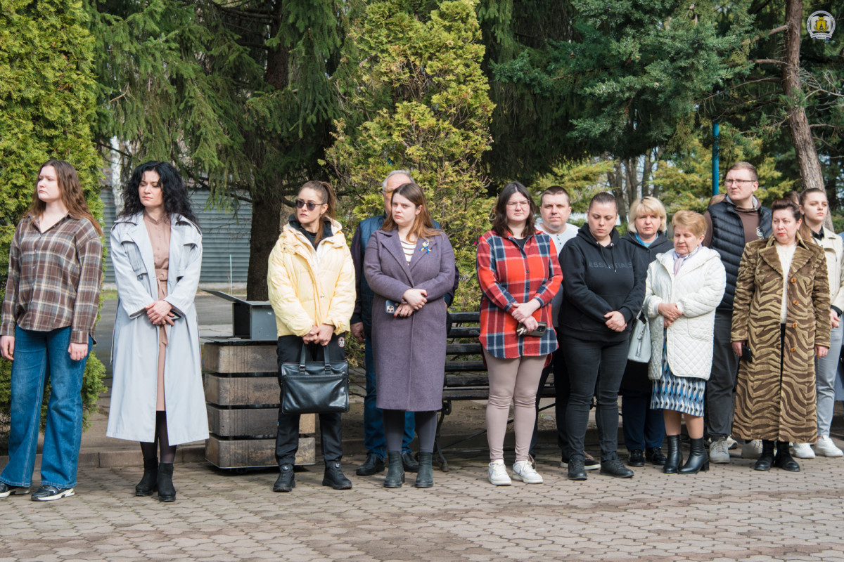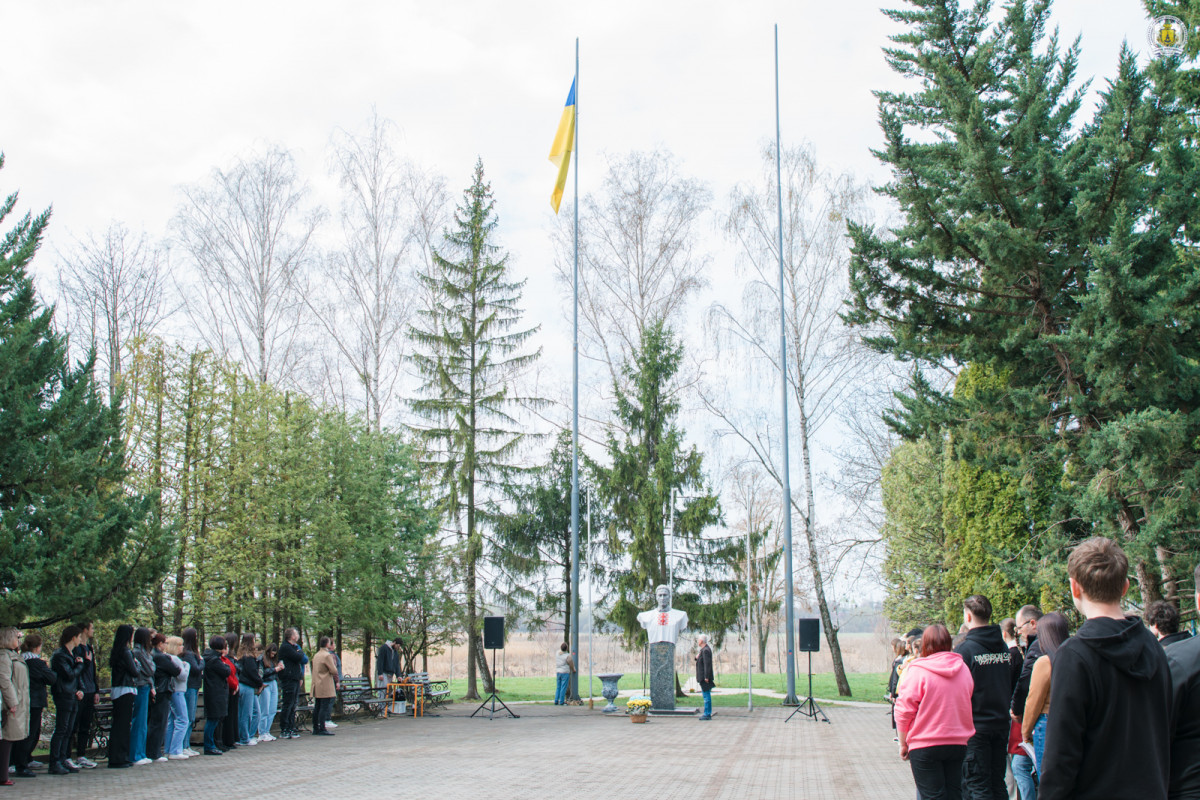 «Сьогодні ми зібралися на цій центральній площі, щоб вшанувати історичну дату. Тоді, після місяця окупації, Збройні Сили, добровольчі формування та прості українці завершили звільнення рідної Київщини. Буча, Ірпінь, Гостомель назавжди залишаться в нашій пам’яті незагоєним шрамом болю. Тоді ми відчули, що наш прапор – це не просто символ, це знак того, що ми стоїмо і будемо стояти завжди», – серед іншого зазначив Олександр Юрійович, після чого присутні згуртувалися у хвилині мовчання за полеглими у горнилі боротьбі та спільному виконанні Державного Гімну України, здійнявши над студмістечком великий стяг України.