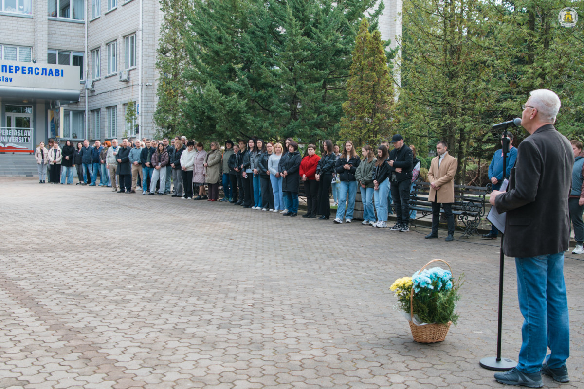 «Я пишаюся нашими людьми. У лютому 2022-го наш колектив продемонстрував максимальну єдність. Ми нікуди не поїхали, ми залишилися боронити Переяславщину. Саме університет став основою добровольчого руху громади. Я сьогодні зранку рахував: лише за період до 2 квітня 2022 року загинули вісім наших випускників. Одним із перших поклав життя за Київщину Остап Левчук, вечір пам’яті про якого нещодавно відбувся в університеті. Усі вони ходили цими алеями, сиділи в цих аудиторіях – ми маємо бути гідними їхньої пам’яті», – підкреслив Віталій Вікторович.