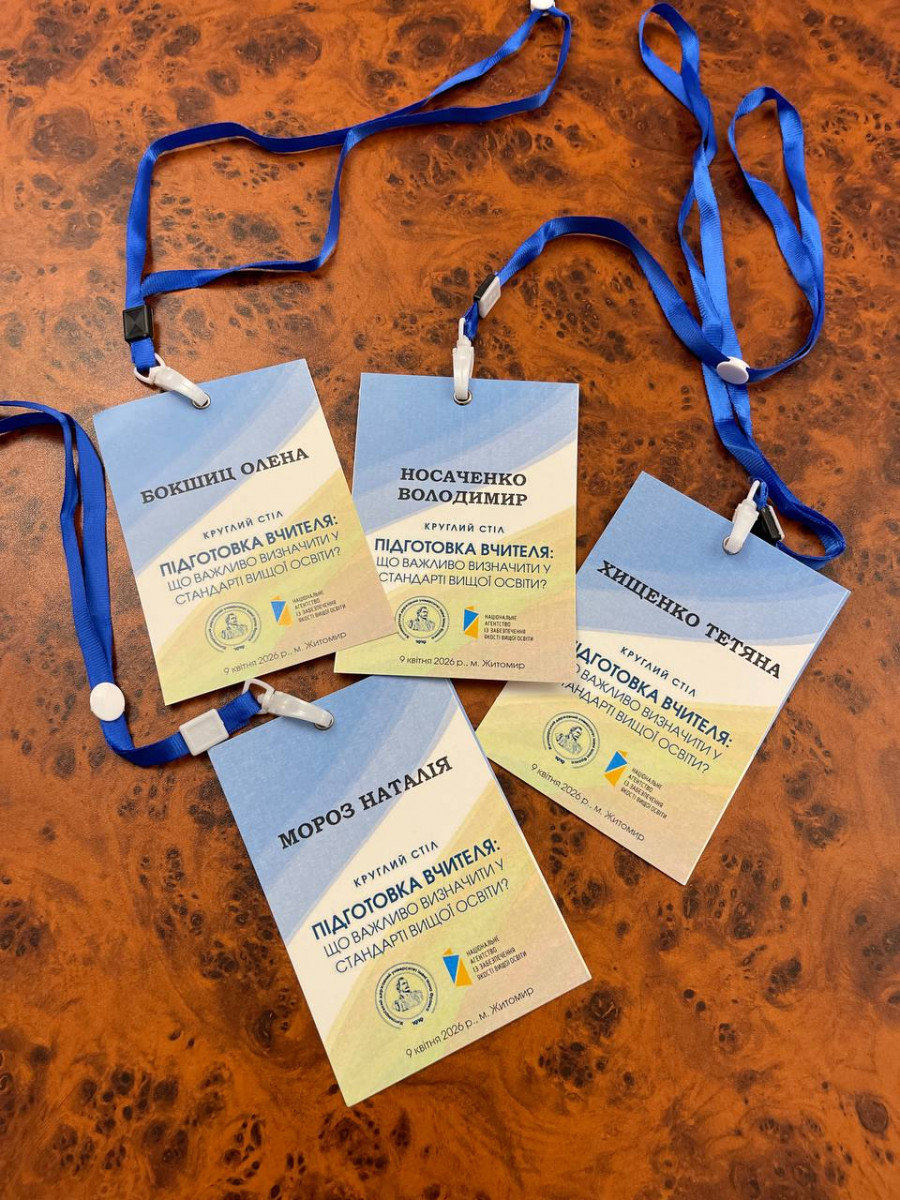 9 квітня 2026 року на базі Житомирського державного університету імені Івана Франка відбувся круглий стіл «Підготовка вчителя: що важливо визначити у стандарті вищої освіти». Університету Григорія Сковороди в Переяславі у обговоренні представляли: керівник навчально-наукового центру забезпечення якості освіти Олена Бокшиц, методист І категорії Тетяна Хищенко, методист Наталя Мороз та керівник навчально-наукового відділу Ірина Каменська.