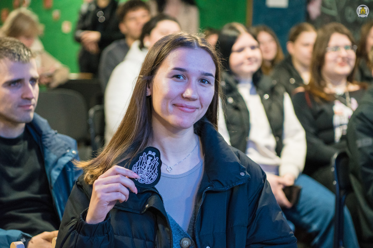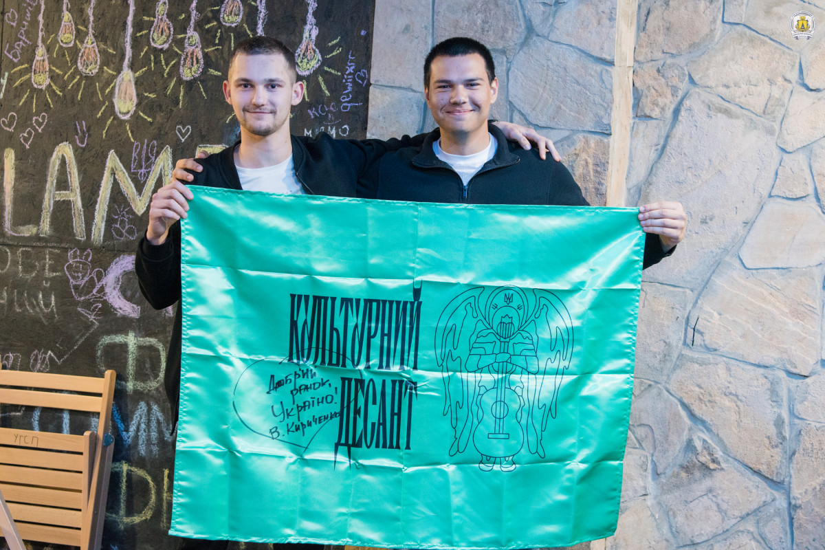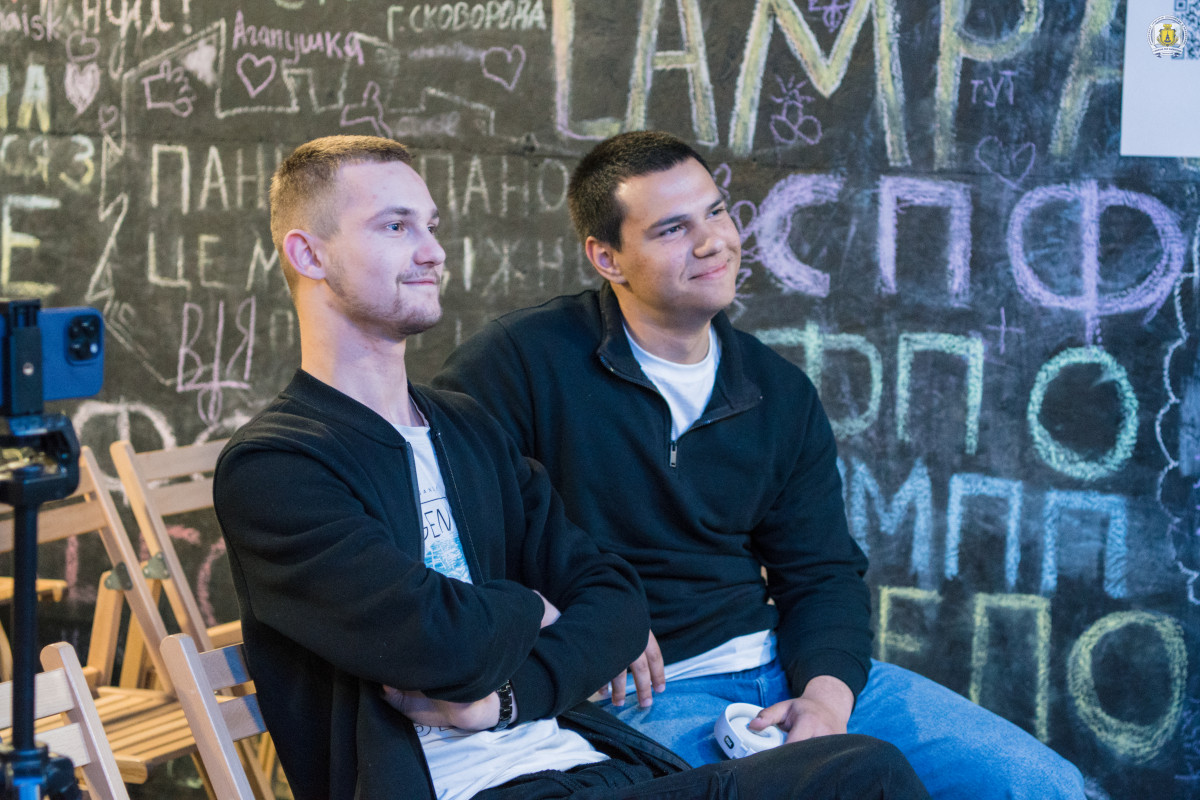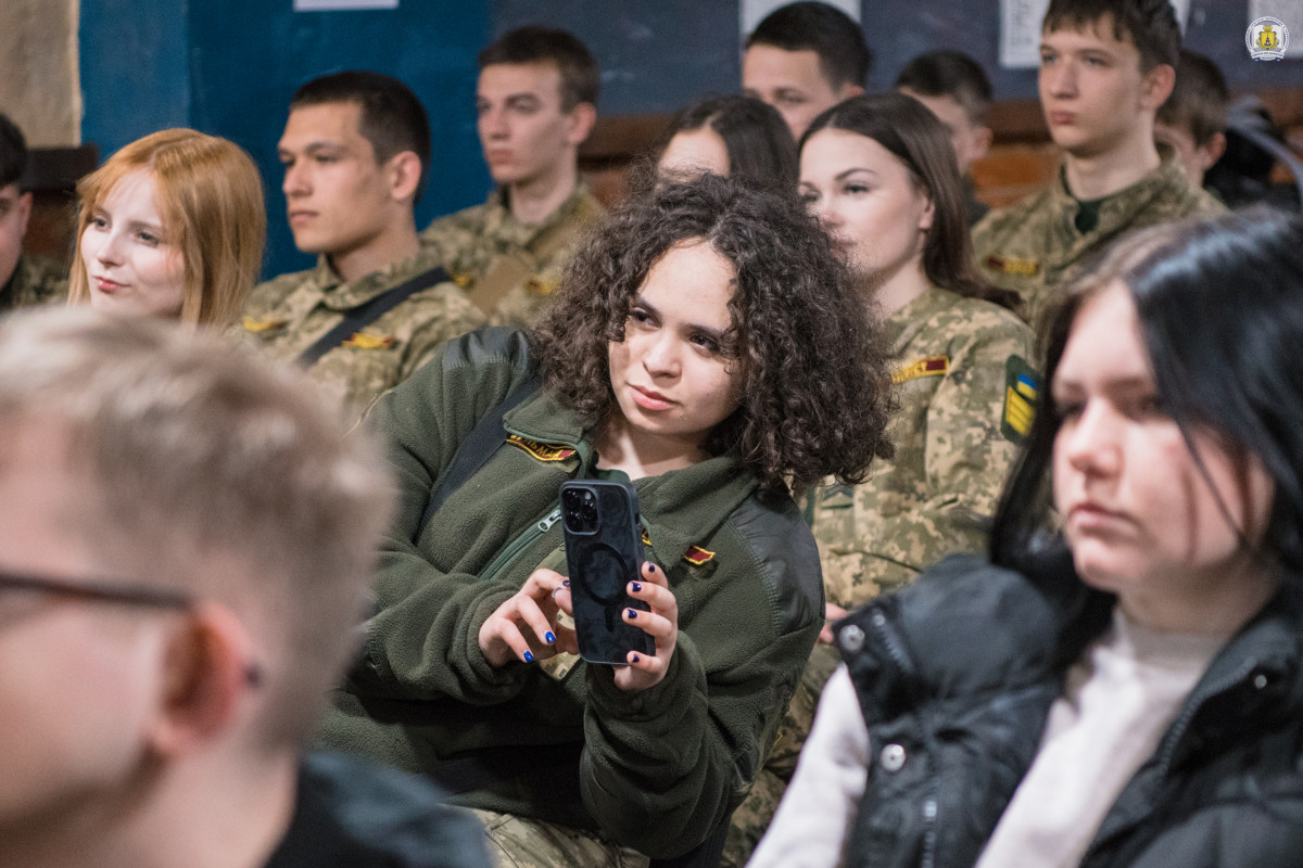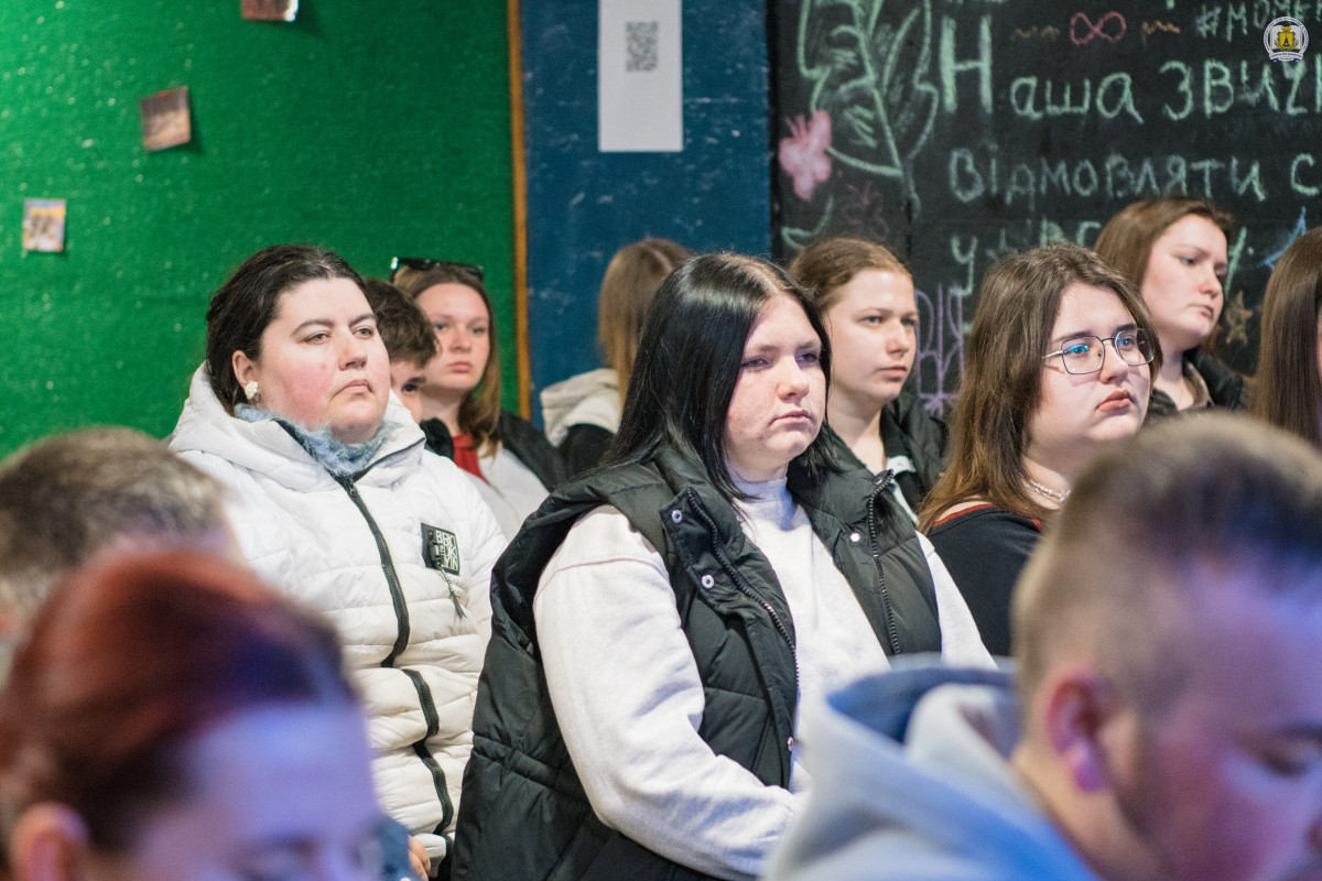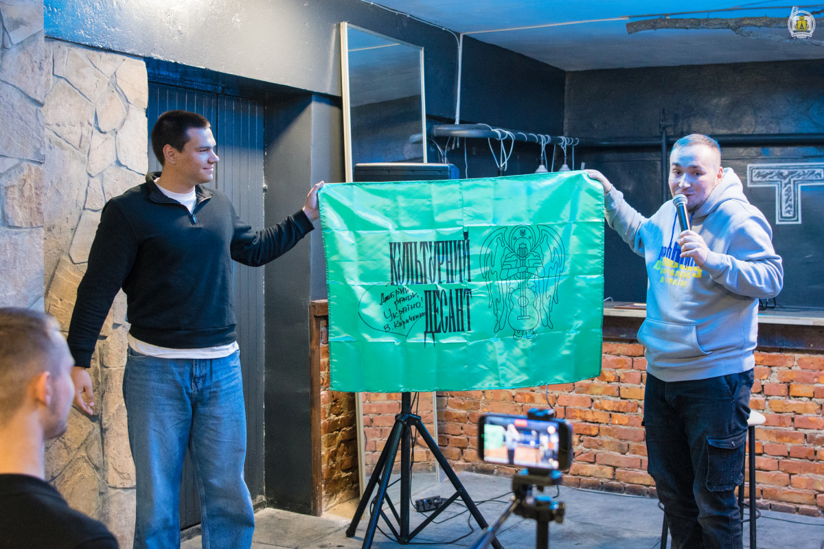«Ви як молоді люди, які починають життя, маєте розуміти: що б ви не робили, вас завжди будуть критикувати. Хто хоч щось робить, його завжди сварять, а хто нічого не робить – той завжди хороший», – зазначив музикант та детально розповів про роботу «Культурних сил» – підрозділу, який проводить культурно-просвітницьку роботу безпосередньо в зоні бойових дій. Географія їхньої праці вражає: від Покровська до Лимана, Куп’янська, Костянтинівки та Бахмута. Кириченко представив свою мистецьку команду, згадавши побратимів: бандуриста Володимира Вікарчука («Шпилясті кобзарі»), зв’язківця Миколу Короля, піаніста Миколу Білика, якого в підрозділі жартома називають «позашлюбним онуком Ірини Білик», та командира Дмитра Мельника з гурту «Ot Vinta».
