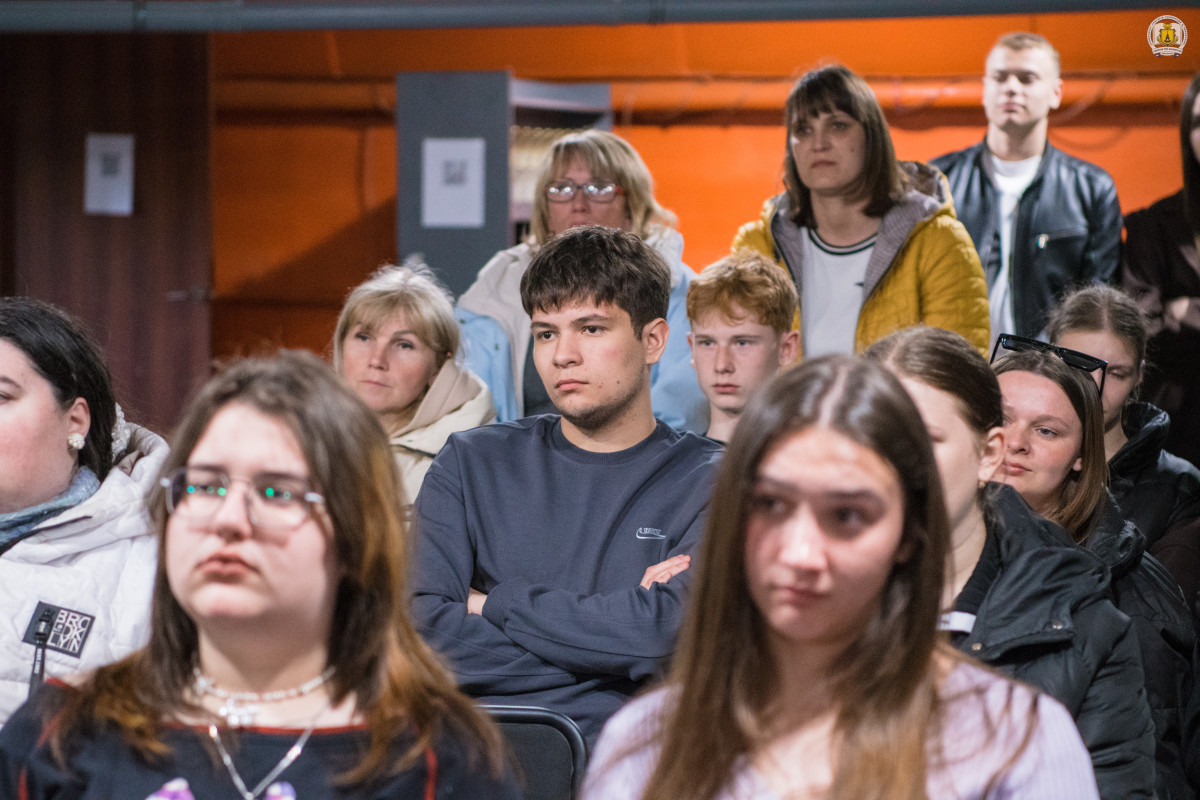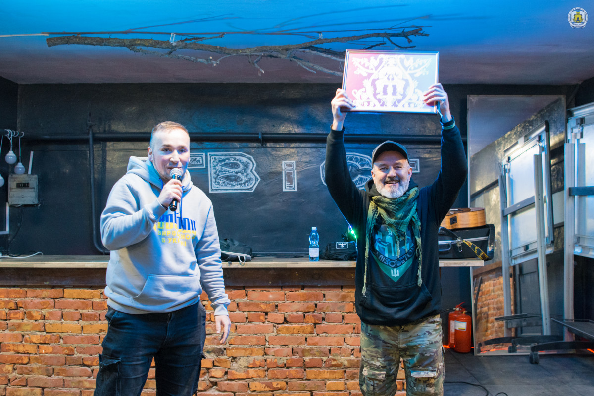 У ході зустрічі одним із найцікавіших моментів стали спогади пана Віталія про початок творчого шляху та досвід виступу на одній сцені з такими велетнями українського року, як «Океан Ельзи», «Тартак» та «ТНМК». Музикант розповів, як на початку кар’єри «Нумер 482» випала нагода виступати на розігріві у переповненому Палаці Спорту перед десятитисячною аудиторією. Згадуючи цей досвід та хвилювання перед виходом, Кириченко процитував влучну «окопну» пораду одного поважного чоловіка про те, що є найважливішим для артиста в таку мить: «Головне – не всратися». Ця прямолінійна мудрість викликала щирий сміх у залі, влучно підкресливши різницю між глянцевим шоу-бізнесом і суворими реаліями, які гартують характер.