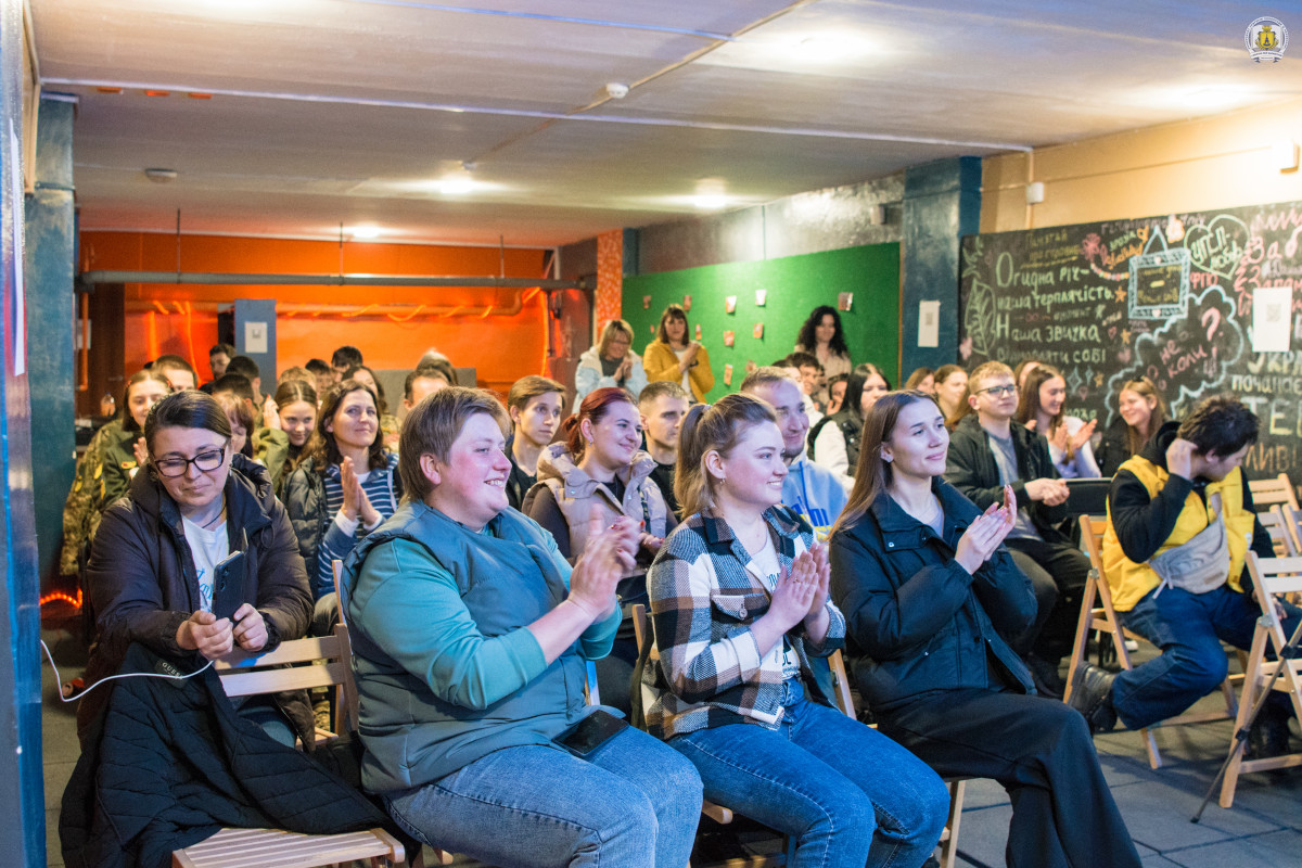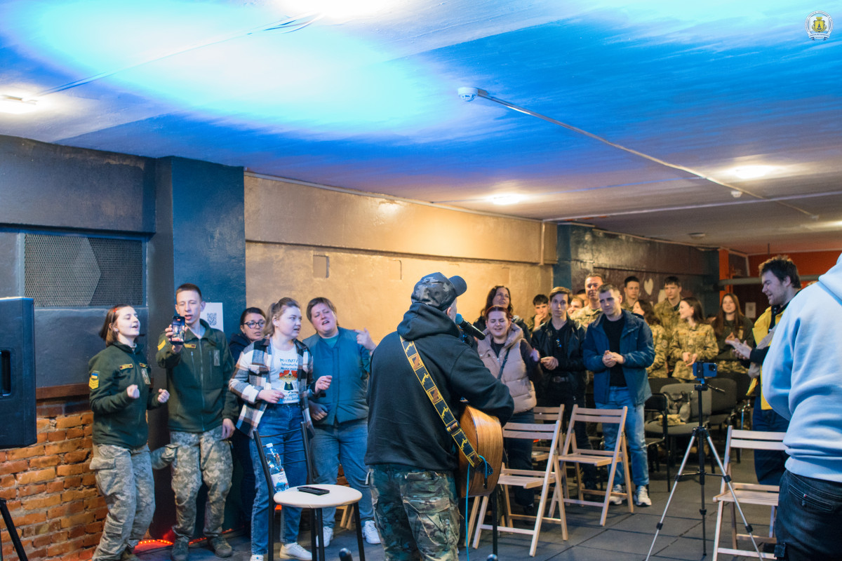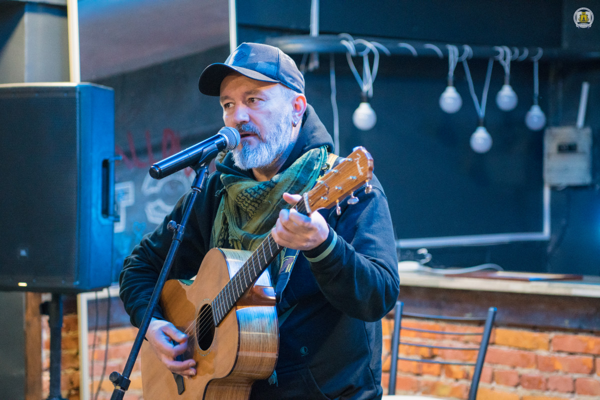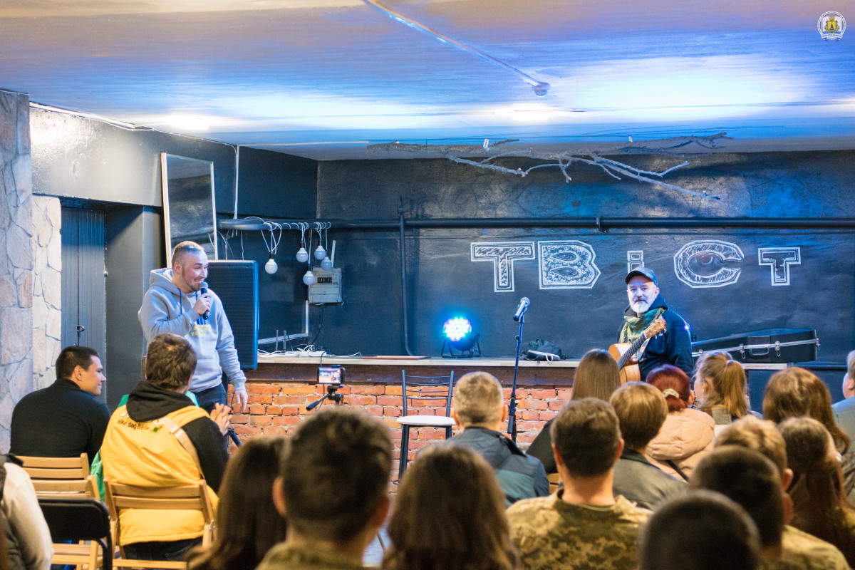 Між піснями, зокрема «Тероборона країни», «Трилер», «Сніг», «Я йду по воді», «Будьмо» та «Запах свободи» (написаної разом із Русланом Горовим) Віталій читав вірші побратимів та ділився спогадами про службу з Тарасом Тополею та Сергієм Василюком (які у різні роки теж були гостями нашого університету – прим.авт.), наголошуючи на силі «піксельного братства», де люди з різних світів стають однією родиною.