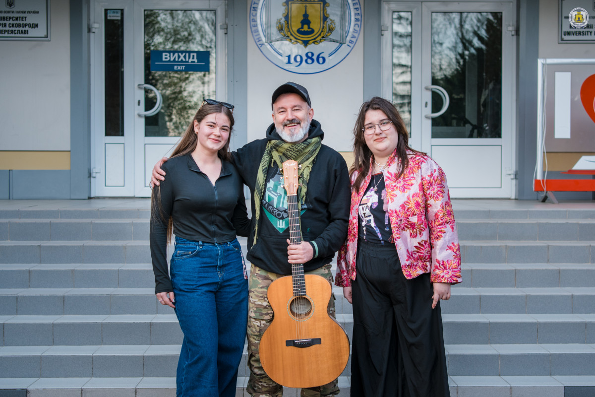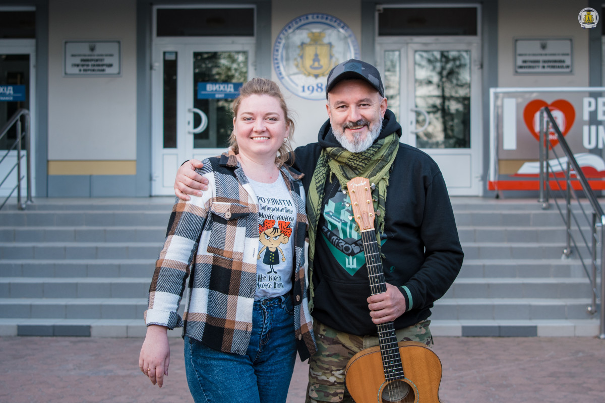 15 квітня 2026 року стіни Університету Григорія Сковороди в Переяславі знову стали свідками унікального переплетіння мистецтва та війни. У межах вже другої зустрічі в рамках нового мистецько-просвітницького благодійного проєкту «University Live Stage» до закладу завітав особливий гість – фронтмен легендарного гурту «Нумер 482», а нині боєць Краматорської мобільної групи «Культурних сил» Віталій Кириченко.